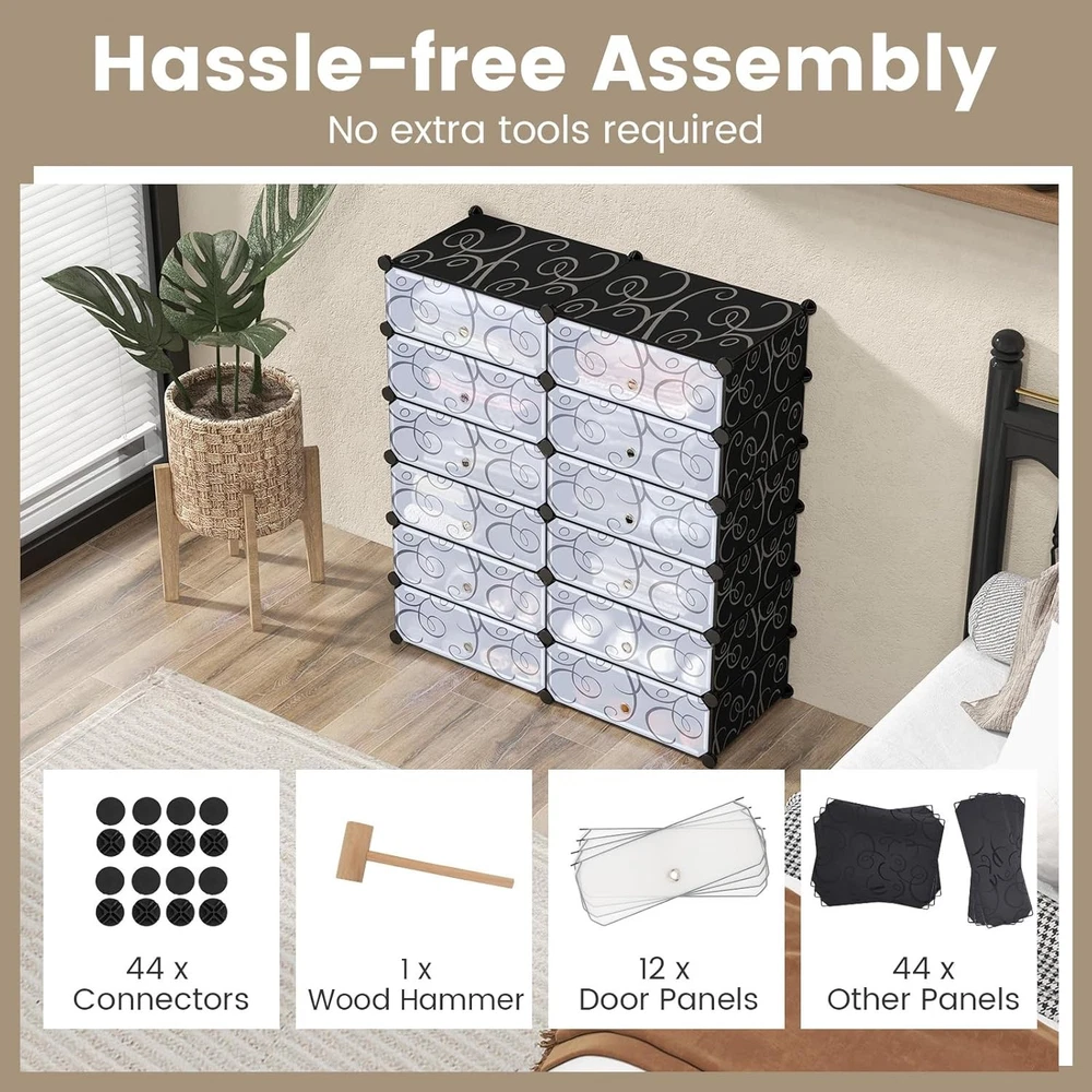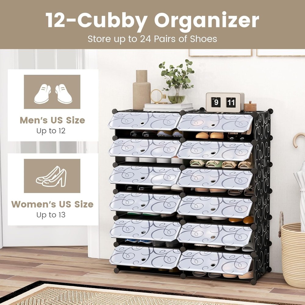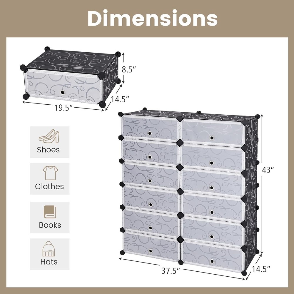 【Organize Your Shoes in Style】 With this covered shoe rack, you can neatly store and display your shoe collection, ensuring easy access and a clutter-free environment. It also offers the flexibility to DIY the rack into different shapes as needed. 【Maximize Your Storage Space】 This shoe shelf is designed to make the most of your available space. With its compact and vertical design, it can fit seamlessly into any closet, entryway, or bedroom, allowing you to maximize your shoe storage capacity. 【Protect Your Shoes from Dust】 The flip lids included with the shoe organizer provide an extra layer of protection, keeping your beloved shoes safe from dust. And also, it help to block odors from those smelly shoes for a refreshing environment. 【S... Happylistings Shoe Rack Organizer, 6 Tier Shoe Shelves With Covers, Diy Design, 24-Pair Stackable Cube Organizer Boxes, Freestanding Shoe Cabinet For Entryway Bedroom Closet Hallway (Black) 【Organize Your Shoes in Style】 With this covered shoe rack, you can neatly store and display your shoe collection, ensuring easy access and a clutter-free environment. It also offers the flexibility to DIY the rack into different shapes as needed. 【Maximize Your Storage Space】 This shoe shelf is designed to make the most of your available space. With its compact and vertical design, it can fit seamlessly into any closet, entryway, or bedroom, allowing you to maximize your shoe storage capacity. 【Protect Your Shoes from Dust】 The flip lids included with the shoe organizer provide an extra layer of protection, keeping your beloved shoes safe from dust. And also, it help to block odors from those smelly shoes for a refreshing environment. 【Sturdy & Durable Construction】 With its sturdy metal frame and durable plastic panels, the shoe rack can withstand the weight of up to 24 pairs of shoes without bending or collapsing. It is also lightweight and easy to dissemble, great for apartments and dorms. 【Quick & Easy Assembly】 The shoe storage cabinet comes with clear instructions and a necessary tool - the wooden hammer, making assembly a breeze. You can have your shoe rack set up and ready to use in minutes, saving you time and effort. Item Specifics Brand Unbranded Type Free Standing Shoe Racks Color Black Color Black Recommended Uses For Product Shoes Product Dimensions 14.5"D x 37.5"W x 43"H Special Feature Shoe Rack with Covers Mounting Type Floor Mount Room Type Closet, Hallway, Dining Room Included Components 1 x User Guide, 1 x Shoe Rack Finish Type Grey Size 37.5" x 14.5" x 43" (W x D x H) Number of Shelves 6 Item Weight 19.5 Pounds Installation Type Freestanding Assembly Required Yes Frame Material Iron Item Weight 19.5 pounds Item model number AAAA13-CYWH #957,431 in Home & Kitchen (See Top 100 in Home & Kitchen) #957,431 in Contact Us 1.Dear customers, we appreciate your business, our aim is to provide Top Level Customer Service,if you are satisfied with our service, please leave us a 5 star positive feedback . 2.If you have any question or concern about your eBay order, please feel free to let us know. We will try our best to reply all questions within 24 hours. However, no answer will be replied during weekends or holidays. Please allow up to 48 hours delay in receiving our response after long weekends or holidays. 3.Please via eBay Message for a solution for resolutions before leaving negative feedback, we strive to providing the greatest service and bringing the highest satisfaction to all of our customers. Shipping 1.We usually ship within 3-5 business days of receiving cleared payment., and we provide Free Shipping for most items. 2.Fast shipping is very important for us. We use multiple fulfilment warehouse around the United States. We only ship to the lower 48 States and do not ship to PO Boxes. 3.Please make sure the correct Ship-To address is entered before checking out. Once the payment is completed, you may not be able to change the shipping address. We shall not be held responsible for any wrong or undeliverable addresses. Returns 1.We provide 14 days return upon the buyer received the item. It must be in good condition and you will undertake the returned shipping cost. 2.We will offer replacement or refund for all DEFECTIVE items (not including damage resulting from accidents / abuse / misuse / improper care), but a photo is needed for our reference beforehand and should be reported to us within 7 days from purchase date. 3.All items are brand new and have been passed the quality check. All are packed in a good condition before item dispatch. Payment We accept PayPal payment,PayPal Credit,Credit card or debit card and so on. Payment should be completed within 4 (Four) days of auction closing. Or unpaid dispute will be filed for closing auction. We will leave a positive feedback immediately after payment is received. We appreciate a positive feedback as much as you do. If for some reason there is any issue with the purchase, please contact us prior to leaving feedback, we will be glad to work together and provide a satisfying solution. Happylistings DESCRIPTION PAYMENT SHIPPING RETURN POLICY CONTACT US Help & Info Payment Policy Shipping Policy Return Policy FAQ About Us Shoe Rack Organizer, 6 Tier Shoe Shelves With Covers, Diy Design, 24-Pair Stackable Cube Organizer Boxes, Freestanding Shoe Cabinet For Entryway Bedroom Closet Hallway (Black) 【Organize Your Shoes in Style】 With this covered shoe rack, you can neatly store and display your shoe collection, ensuring easy access and a clutter-free environment. It also offers the flexibility to DIY the rack into different shapes as needed. 【Maximize Your Storage Space】 This shoe shelf is designed to make the most of your available space. With its compact and vertical design, it can fit seamlessly into any closet, entryway, or bedroom, allowing you to maximize your shoe storage capacity. 【Protect Your Shoes from Dust】 The flip lids included with the shoe or