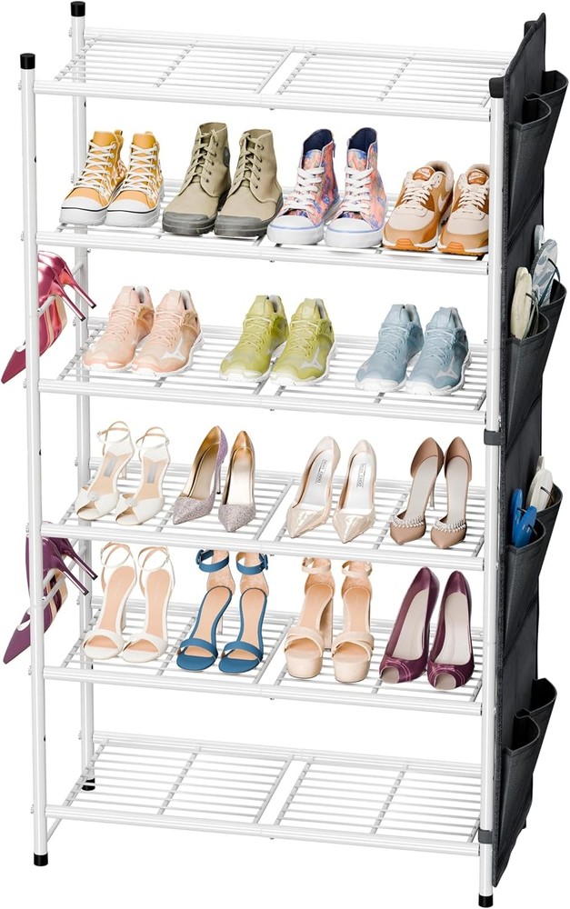 This 6-tier metal rack is a game-changer for any space! Perfect in the kitchen for pots and pans, the entryway for shoes, or the closet for accessories—it keeps everything organized without taking up much room. The sturdy design holds up to 24 pairs of shoes, and you can adjust the shelves for boots or taller items. Love how versatile and sleek it looks while cutting down clutter. A must-have for small spaces!