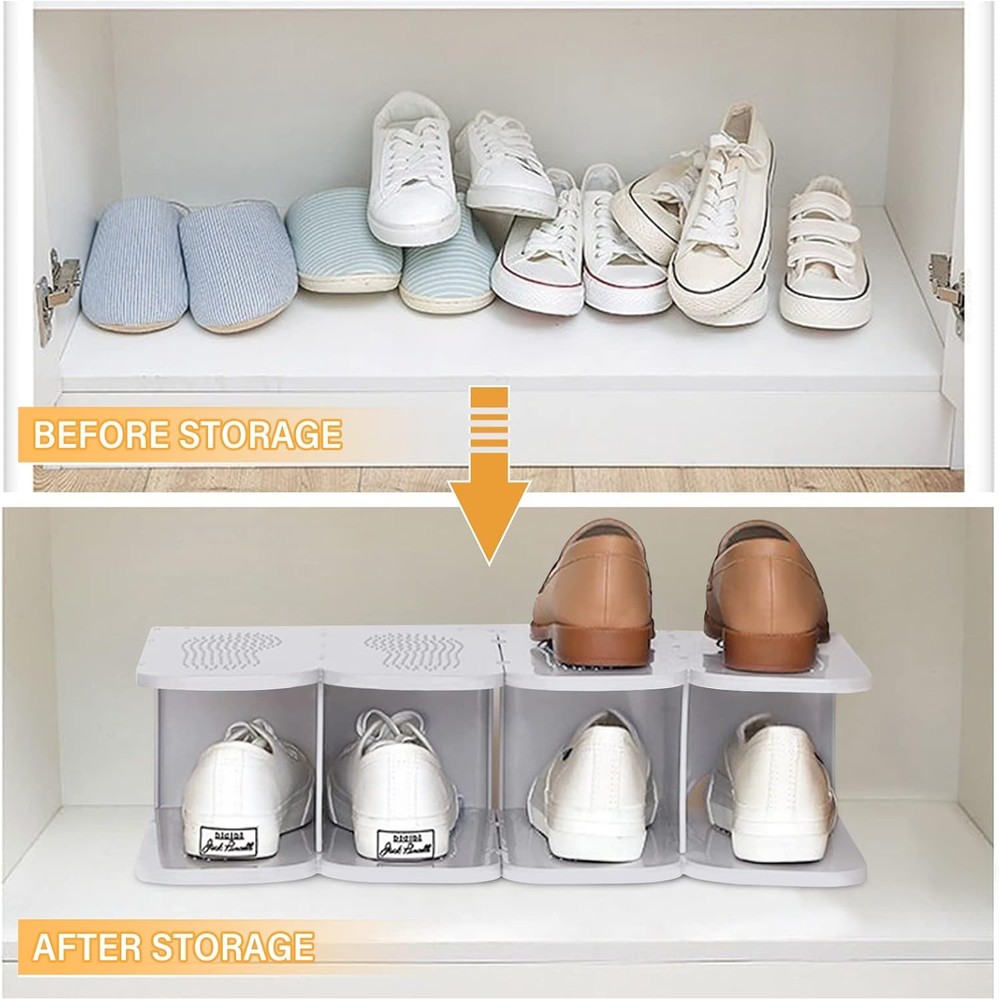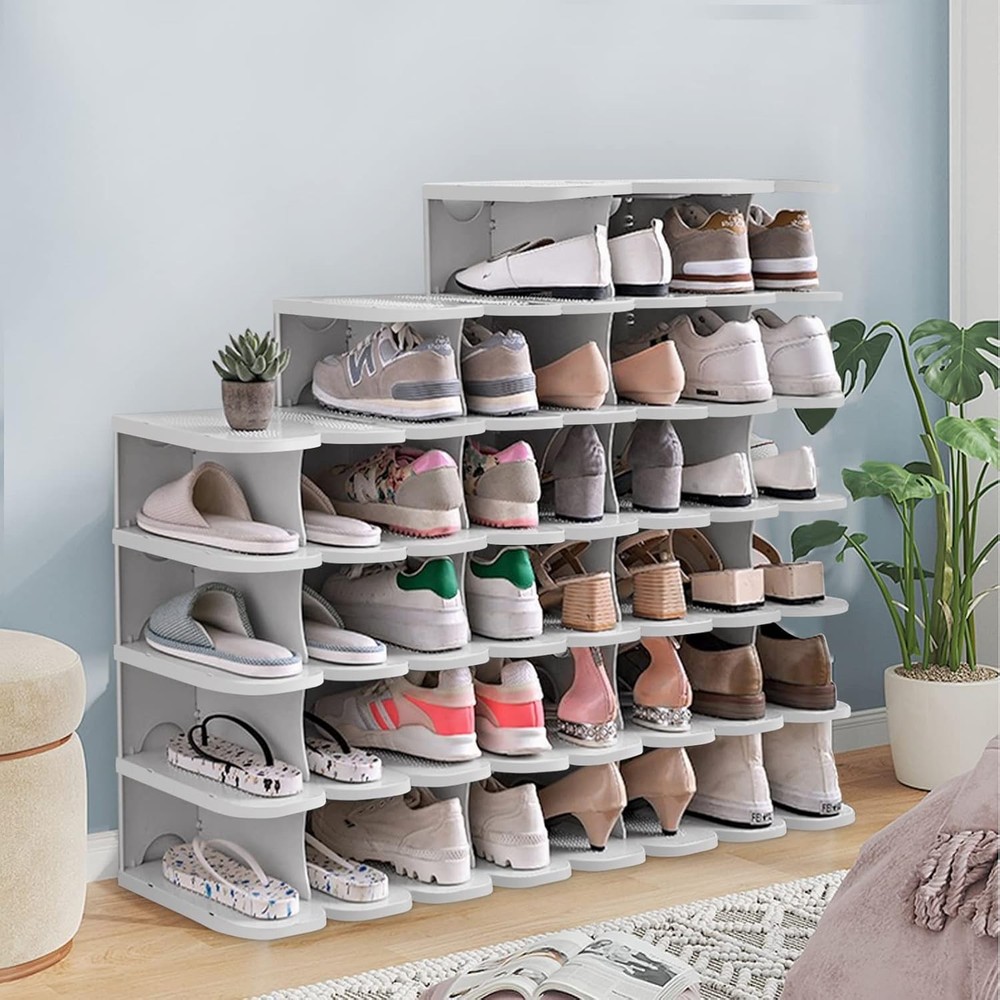 This shoe rack is a game-changer for my closet! The thickened PP material makes it super sturdy, and the non-slip surface keeps my shoes from sliding. Love that I can combine multiple sets to fit any space—perfect for sneakers, heels, and even boots. Super easy to assemble and saves so much room. Highly recommend for anyone needing smart, durable shoe storage!