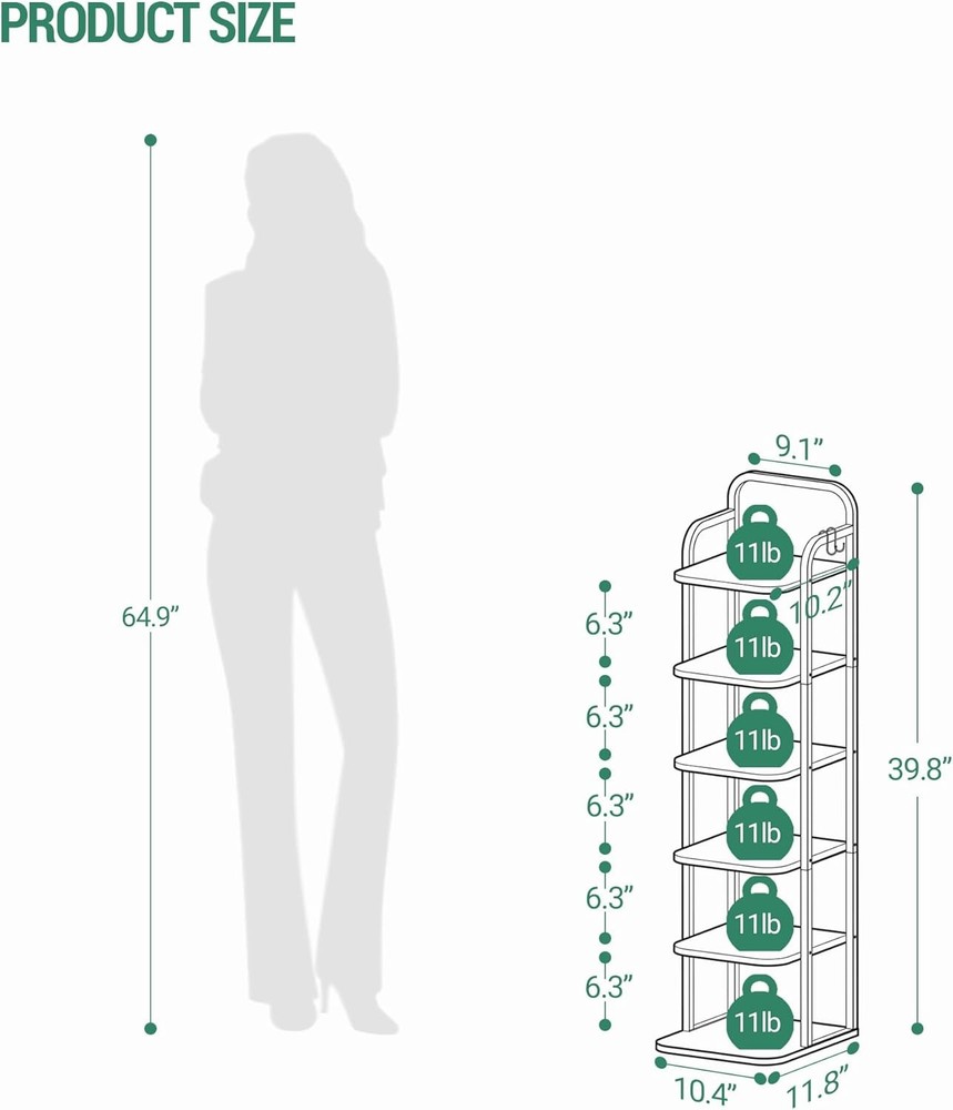 [Space Saving Shoe Rack] This vertical shoe rack is 11.8"D x 10.4"W x 39.8"H, which is very suitable for use in small spaces. It makes full use of vertical space and occupies a very small space, which is very suitable for entryway, living room, bedroom, corridor and garage, etc [Multiple Storage Options] This narrow shoe storage could be used as a plant stand, photos and so on. It has several purposes to use. The hooks on both sides of the shoe rack can hang umbrellas, wallets or other items [DIY to Which You Like] The corner shoe shelves are adjustable, if you get two or more shoe racks, you could also consider designing them as you like [Stable and Steady] The shoe tower organizer is made of excellent particleboard. Each partition can easily bear the... Happylistings 6 Tiers Vertical Shoe Rack, Narrow Shoe Tower, Tall Shoes Shelf With 2 Hooks, Adjustable Shelves, Corner Shoes Shelves For Small Spaces, Entryway, Living Room, White Gold Sr04213A [Space Saving Shoe Rack] This vertical shoe rack is 11.8"D x 10.4"W x 39.8"H, which is very suitable for use in small spaces. It makes full use of vertical space and occupies a very small space, which is very suitable for entryway, living room, bedroom, corridor and garage, etc [Multiple Storage Options] This narrow shoe storage could be used as a plant stand, photos and so on. It has several purposes to use. The hooks on both sides of the shoe rack can hang umbrellas, wallets or other items [DIY to Which You Like] The corner shoe shelves are adjustable, if you get two or more shoe racks, you could also consider designing them as you like [Stable and Steady] The shoe tower organizer is made of excellent particleboard. Each partition can easily bear the weight of 11 lb, and the large partition at the bottom helps the shoe rack stand firmly on the ground [Easy Assembly] Each part is clearly labeled and the instruction manual is comprehensible to eliminate the guesswork. You won’t go wrong. This shoe shelf is made out of FSC-Certified wood Item Specifics Brand Unbranded Type Free Standing Shoe Racks Color White Gold Room Type Bedroom, Living Room Number of Shelves 6 Special Feature Space Saving Product Dimensions 11.8"D x 10.4"W x 39.8"H Style Glam Finish Type Laminated Product Care Instructions Wipe with Dry Cloth Size 6 Tier(11.8"D x 10.4"W x 39.8"H) Weight Limit 66 Pounds Assembly Required Yes Recommended Uses For Product shoe storage, plant stand, displaying ite Number of Items 1 Included Components 1 x AntiTip Kit, 1 x Instructions, 1 x Shoe Rack, Model Free standing shoe rack Item Weight 11 Pounds Furniture Finish Wood Installation Type Freestanding Min. Required Door Width 10.4 Inches Weight capacity Maximum weight: 66 Pounds Back Style Backless Specific Uses For Product Shoes, Plants, Books Unit Count 1.0 Count Product Name shoe rack Shelf Thickness 12 Millimeters Contact Us 1.Dear customers, we appreciate your business, our aim is to provide Top Level Customer Service,if you are satisfied with our service, please leave us a 5 star positive feedback . 2.If you have any question or concern about your eBay order, please feel free to let us know. We will try our best to reply all questions within 24 hours. However, no answer will be replied during weekends or holidays. Please allow up to 48 hours delay in receiving our response after long weekends or holidays. 3.Please via eBay Message for a solution for resolutions before leaving negative feedback, we strive to providing the greatest service and bringing the highest satisfaction to all of our customers. Shipping 1.We usually ship within 3-5 business days of receiving cleared payment., and we provide Free Shipping for most items. 2.Fast shipping is very important for us. We use multiple fulfilment warehouse around the United States. We only ship to the lower 48 States and do not ship to PO Boxes. 3.Please make sure the correct Ship-To address is entered before checking out. Once the payment is completed, you may not be able to change the shipping address. We shall not be held responsible for any wrong or undeliverable addresses. Returns 1.We provide 14 days return upon the buyer received the item. It must be in good condition and you will undertake the returned shipping cost. 2.We will offer replacement or refund for all DEFECTIVE items (not including damage resulting from accidents / abuse / misuse / improper care), but a photo is needed for our reference beforehand and should be reported to us within 7 days from purchase date. 3.All items are brand new and have been passed the quality check. All are packed in a good condition before item dispatch. Payment We accept PayPal payment,PayPal Credit,Credit card or debit card and so on. Payment should be completed within 4 (Four) days of auction closing. Or unpaid dispute will be filed for closing auction. We will leave a positive feedback immediately after payment is received. We appreciate a positive feedback as much as you do. If for some reason there is any issue with the purchase, please contact us prior to leaving feedback, we will be glad to work together and provide a satisfying solution. Happylistings DESCRIPTION PAYMENT SHIPPING RETURN POLICY CONTACT US Help & Info Payment Policy Shipping Policy Return Policy FAQ About Us 6 Tiers Vertical Shoe Rack, Narrow Shoe Tower, Tall Shoes Shelf With 2 Hooks, Adjustable Shelves, Corner Shoes Shelves For Small Spaces, Entryway, Living Room, White Gold Sr04213A [Space Saving Shoe Rack] This vertical shoe rack is 11.8"D x 10.4"W x 39.8"H, which is very suitable for use in small spaces. It makes full use of vertical space and occupies a very small space, which is very suitable for entryway, living room, bedroom, corridor and garage, etc [Multiple Storage Options] This narrow shoe storage could be used as a plant stand, photos and so on. It has several purposes to use. The hooks on both sides of the shoe rack can hang umbrellas, wallets or other items [DIY to Which You Like] The corner shoe shelves are 