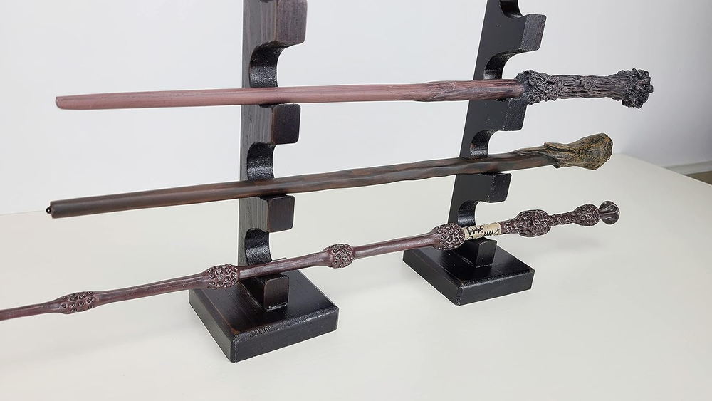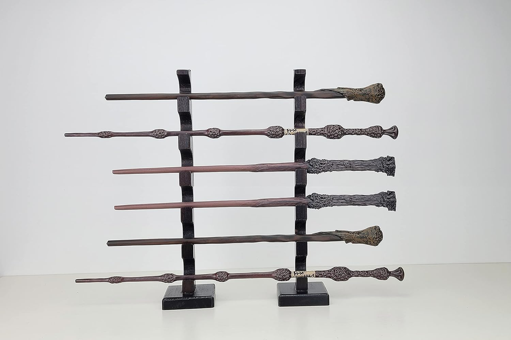 Business is our speciality NEW Wizard Wand Stand Display - 6 Tiered Wood Magic Wand Holder for Table Display, Holds Six Wands FEATURES ELEGANT DISPLAY - The way this wand stand displays provides an amazing decoration for your home or office SOLID & STURDY - Made of high quality solid wood, with big base, it's very stable to hold 6 wands MULTI-PURPOSE STAND - Comes with 2 separated parts, it perfectly fit long or short wands and swords SIZE MATTERS - Measuring 2.5"x2.5"x12.5", holes size 1", compact and nicely display your wands Amazing Gift Idea for Wands Enthusiast. Material: Pine Wood with dark finish. Wands not included Are you tired of putting your fancy wands in their box that you can't use to decorate your room? We are. This is a decent wand stand made of solid wood with a nice dark brown painting, unlike its cheap unsteady plastic counterparts, it will proudly display your wizard wands on your table or cabinet. It comes with two separated parts, you can adjust the distance between to fit different length magic wands and it will be very sturdy thanks to its big base. Arrives Ready-to-Use (No assembly required), measuring 2.5"x2.5"x12.5", holes size 1", this is a compact size wand display stand so people will always focus on the wands other than the stand. It also displays different things like pens, makeup brushes, katanas, samurai swords, knives, native American flute whistles and more. You can show off your interesting and creative style with it. This wand holder will add a perfect wizard touch to your home decor, it's also a great gift idea for people who love magic wands. Get your magic wand stand today and enjoy a wizard decor piece. Assembly required No Batteries required No Product Dimensions 12 x 2.5 x 2.5 inches Country of Origin China Item Weight 7 ounces Finish types Painted Size 6 tier 2.5 inches x 12.0 inches x 2.5 inches. Weight: 7.0 oz Ask us anyhting Free shipping PAYMENT We accept all payments via Ebay using Credit Cards , PAYPAL , Apple Pay and many others SHIPPING We are always working hard to ensure your package arrives as soon as possible. Please understand that some factors like weather, high postal traffic, and the performance of shipping companies are outside of our control. DELIVERY & RETURN POLICY We offer a 30-Day Return Policy on items in which you are not completely satisfied with. You have the option of a full-refund or an exchange of the item. No returns are available on items shipped outside of the USA.