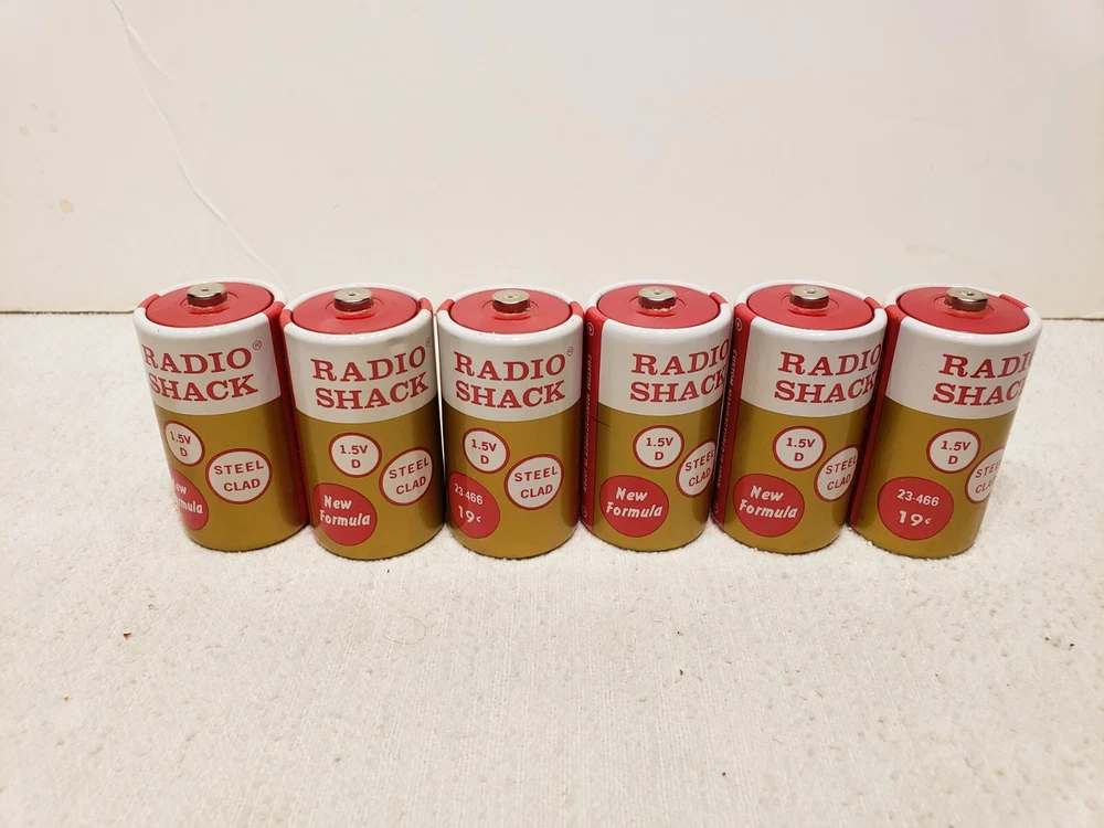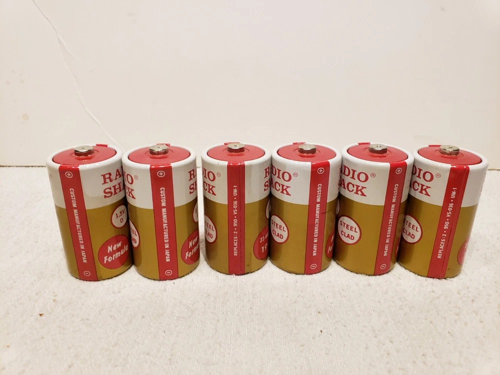 6-Vintage Radio Shack D Batteries Steel Clad New Formula 70s Japan.(h)