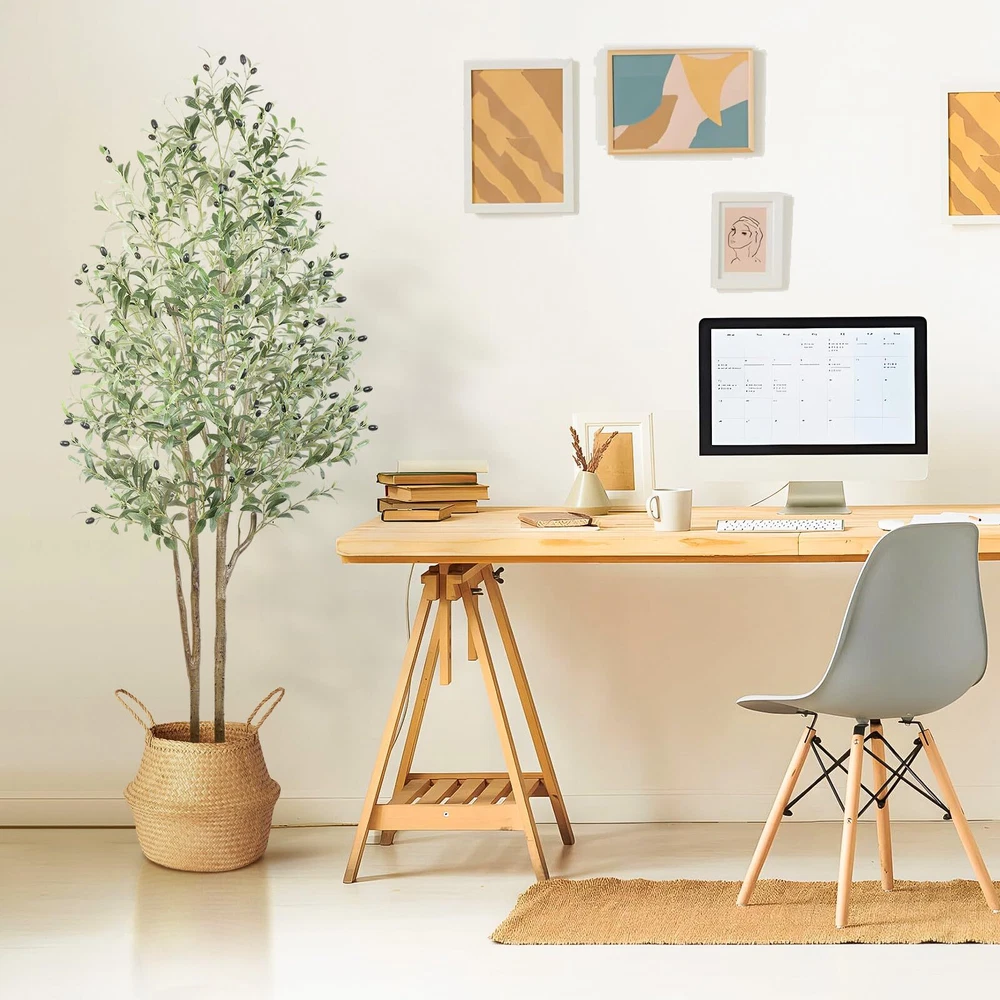 6FT Artificial Olive Tree with Natural Wood Trunk and Silk Leaves