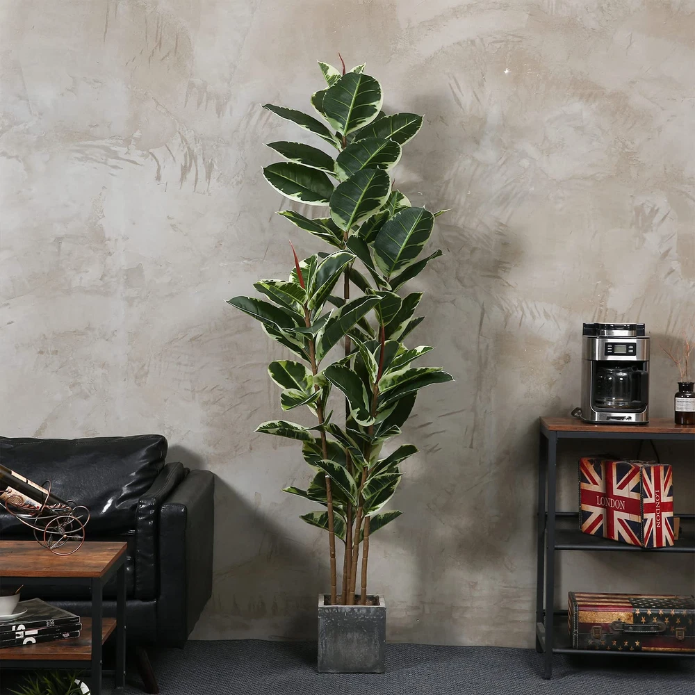 【Lifelike Appearance】Carefully crafted to mimic the appearance of a real live rubber tree plant,looking as close to reality as possible, perfect for any room or office decor. Three trunks adorned with 69 large leaves, clearly textured leaves and variegated color makes this faux rubber tree a timeless home decor for all seasons and will definitely make you feel the existence of nature. 【Stay Green All Year Round】Artificial trees will not wither or die because of the changes of seasons, climates, watering conditions like real trees do. Our faux rubber plants will stay green and fresh for years to come. Just simply wipe it clean if it gets dust on. It will create a natural atmosphere wherever you place it. It’s energy and money saving, win-win! 【DIY Looks】Inserted with soft metal wires, this faux rubber tree can reach its fullness and intended looks by bending and adjusting its branches and leaves. Please be patient and fluff it out from the bottom leaves to the top. Pot Size: 5inx6in(HxW). You can put this artificial tree inside a decorative pot (larger than 6in Width)to match your room decor. 【Stable&Sturdy】This faux silk tree is made of premium silk, polyester and soft metal wire, stable and sturdy. The black nursery pot is made of hard PP material with cement poured inside which prevents children or pets from knocking it down. Once you have settle its look, this faux rubber tree will stay fresh and green all the time. 【Indoor&Outdoor Decor】Standing 6ft tall from the pot bottom to the top leaves, this artificial rubber tree is a perfect room decor piece. No matter it’s for indoor or outdoor decor, this faux tree will creates a finishing touch to any places. Please avoid direct sunlight and rain for outdoor use. It’s a perfect gift choice on Parties, Housewarming, Birthdays, Ceremonies, Weddings,etc.
