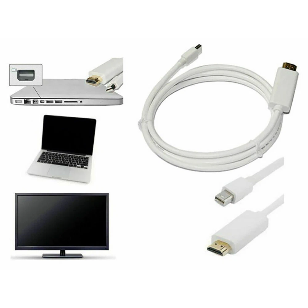 Product Description New 6ft Thunderbolt DisplayPort DP to HDMI Adapter Cable for Mac Macbook Features: Viewing your laptop on your HDTV doesn't get any easier. Simply, plug the Mini DisplayPort end into your laptop®, and connect the HDMI end to an HDMI (Type-A) cable, then plug the cable into your HDMI input jack. Your photos, your videos, your presentations, your games - view them all in HD on the big screen. The Mini DisplayPort adapter will need to be used with an HDMI cable (sold separately) This cable can also extend or mirror your workstation to another screen Give presentation to your classmates, students or colleagues for MacBook or laptop Share videos with your friends and family on a bigger external screen or TV. Support audio: DTS/DTS-HD, Dolby Digital / Dolby TrueHD, and Linear PCM (LPCM); Elegant white colour, matches with your computers; Mini size, easy to carry Compatible For Macs/MacBooks with Mini DisplayPort / Thunderbolt Compliant with Mini DisplayPort 1.1a, HDMI 1.3b; Support resolutions up to 1080p (FullHD) and 1920 x 1200, no compromise in video quality Support audio: DTS/DTS-HD, Dolby Digital / Dolby TrueHD, and Linear PCM (LPCM); Progressive: 1920 x 1200, 1080p, 720p, 576p, 480p Interlaced: 1080i, 576i, 480i1.2A Compatible with: For Models That Support Audio Pass-through: For MacBook 13" Model 7,1 (Mid 2010) For MacBook Pro 13" Model 7,1 (Mid 2010) For MacBook Pro 15" Model 6,2 (Mid 2010) For MacBook Pro 17" Model 6,1 (Mid 2010) For MacBook Pro 13" Model 8,1 (Early 2011 / Thunderbolt) For MacBook Pro 15" Model 8,2 (Early 2011 / Thunderbolt) For MacBook Pro 17" Model 8,3 (Early 2011 / Thunderbolt) For MacBook Air 11" Model 3,1 (Late 2010) For MacBook Air 13" Model 3,2 (Late 2010) For Mac mini Model 4,1 (Mid 2010) For iMac 27" Model 10,1 (Late 2009) For iMac 27" Model 11,1 (Late 2009) For iMac 21.5" Model 11,2 (Mid 2010) For iMac 27" Model 11,3 (Mid 2010) For Mac Pro Model 5,1 (Mid 2010) Basic Setup: Connect the thunderbolt side of the cable to your book. Connect the female HDMI end of the cable to an HDMI cable that goes to your TV/monitor/projector Then you can view the movie or PPT on the big screen! Enjoy! How to set resolution: You can go into “System Preferences” > “Display“. You’ll be able to see 2 display preferences dialog, one for your prime laptop display and one for the external monitor. You can use the settings in dialogs to adjust the screen resolution, color intensity and if you have a monitor that can be swiveled (rotated) you can tell to rotate the display to a certain angle for that particular display. How to set mirror function: With your TV connected to laptop, open System Preference. Then select Display. Then select arrangement tag. Check mirror display Specifications: Length: 6 feet Weight: 2.3 Oz Connectors: Mini DisplayPort/Thunderbolt™ Port male and HDMI female Shipping Returns Contact Us Payment 1. Items sent from US warehouse. 2.Receiving time = Processing time + Shipping time 3. Processing Time: Around 1-2 business Days 4. Shipping Time: 3-5 business day it may have a little delay during some holiday (such as Christmas),any problem ,please feel free to contact 1. 30 days warranty from the purchased date. Please contact us via email before returning the defective item. 2.Our warranty does not extended to any product that are physically damaged or that are not under normal operating conditions as result of misuse or improper installation on the buyer/user's part. 3.Return items should include the original packaging and all accessories. buyers MUST contact us for the returning address. 4.In all cases, buyers pay shipping fees at their own cost to return products for exchange or refund. We will be responsible for the postage of replacements. Refund will be made upon receipt of the returned item. Pls contact us if you have any problems,we will try our best to solve for you We accept all verified payment from eBay. Shipping 1. Items sent from US warehouse. 2.Receiving time = Processing time + Shipping time 3. Processing Time: Around 1-2 business Days 4. Shipping Time: 3-5 business day it may have a little delay during some holiday (such as Christmas),any problem ,please feel free to contact Returns 1. 30 days warranty from the purchased date. Please contact us via email before returning the defective item. 2.Our warranty does not extended to any product that are physically damaged or that are not under normal operating conditions as result of misuse or improper installation on the buyer/user's part. 3.Return items should include the original packaging and all accessories. buyers MUST contact us for the returning address. 4.In all cases, buyers pay shipping fees at their own cost to return products for exchange or refund. We will be responsible for the postage of replacements. Refund will be made upon receipt of the returned item. Contact Us Pls contact us if you have any problems,we will try our best to solve for you Payment We accept all verified payment from eBay. You may also like Watch Crystal Glass Sapphire Bubble Magnifier Calendar Lens Small Date Window 10.66 USD Storage Case Travel Carrying Bag For Bose SoundLink 3 SoundLink III Speaker 20.0 USD Repair LCD Screen Hinge Flex Cable For Canon PowerShot G7X Mark II G7 X II G7X2 12.75 USD TV Remote Control Controller For Bose Solo 5 TV Soundbar System 535 AUX1 CM525 18.99 USD N9 MINI GSM AUDIO LISTENING BUG 2x SENSITIVE MICROPHONE Two-Way Ear Bug Device 18.99 USD New Industrial USB To RS485 Converter Upgrade Protection RS-485 A Connector 11.65 USD powered by