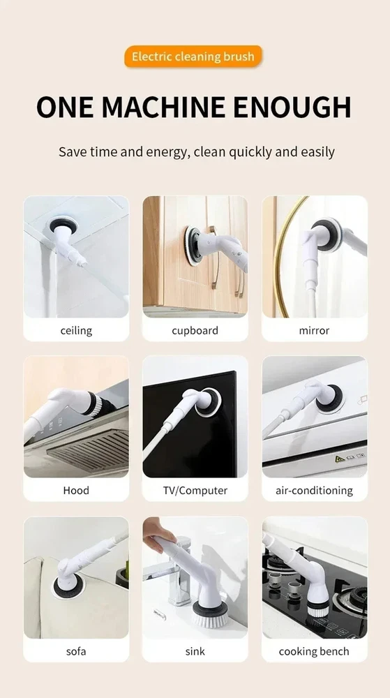 6in1 Electric Cleaning Brush 2000mAh Cordless Electric Rotary Cleaning Brush New