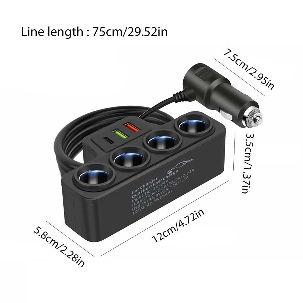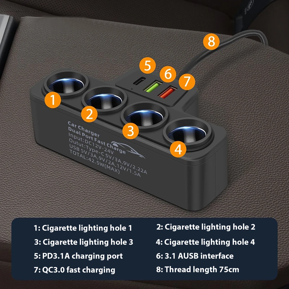 Multi Port USB Car Cigarette Lighter Socket Splitter Charger Power Adapter Bullet Points: Driving Energy Solution: With a distinctive design featuring a 3USB expansion interface and four lighter holes, our car lighter adapter supports an array of in-vehicle electronic products. Effortlessly energy up all your electronics with 120W output. Enhanced Charging Efficiency: Simultaneously charge three electronics with our intelligent car charger adapter. Save time and effort by boosting charging efficiency. Easy Installation: Seamlessly integrate this car inverter charger into your vehicle with its self-adhesive design, ensuring a stable and convenient energy source wherever you go. Ensure Charging Safety: Intelligent cooling and steady current charging ensure your electronics are charged safely, maintaining constant temperature without overheating, even during extended use. Extensive Use: Our car lighter adapter is the ideal solution for charging your USB-operated gadgets outdoors. With seamless compatibility for car navigation systems, cell phones, tablets, music players, and even Car Recorders, stay connected and fully charged wherever you go. Our USB lighter car charger adapter is a must-have for any vehicle! With four lighter ports, it can charge multiple electronics at once. The compact design can be fixed with double-sided tape for easy placement. Specifications: Product name: Car lighter adapter Material: ABS Engineering PP Product size: as shown in the pic Color: black Input Voltage: DC12V/24V Total efficiency: 120W Design: 4 lighter + PD interface + 3.1A USB + QC3.0 Scope of application: Navigator, recorder, car vacuum cleaner, etc. Applicable car models: General Packing List: 1pcs * Car lighter adapter 1.You can make a Credit payment via Paypal.Paypal will let you use MasterCard,Visa to pay. 2.Payment should be completed within 5 days after auction closed, or unpaid dispute will be filed for an closing auction.An unpaid case will be filled after 4 days. ● We strive for 100% customer satisfaction ! ● Positive Feedback is very important to us. ● We hope that you contact us immediately BEFORE you give us neutral or negative feedback, so that we can satisfactorily address your concerns. ● We promise to offer the lowest price and high quality produce. Dear buyers : ● Welcome to my store ! ● Your satisfaction is our top goal,we appreciate your patronizing. ● If you have any questions, please contact us before leave negative or neutral feedback, we will try our best to solve the issue to your satisfaction, thanks ! ● If you are satisfied with our service, please rate the details of the transaction (Detailed Seller Ratings) on eBay. ● Please always talk to us via ebay Message. ● We appreciate your business and look forward to growing our e-Bay sales with satisfied customers.