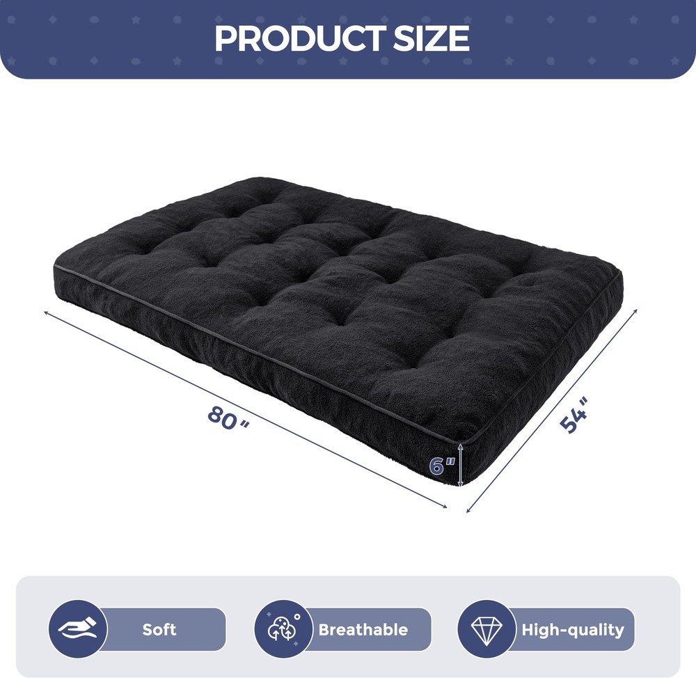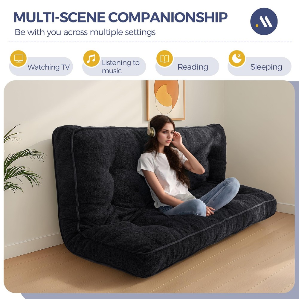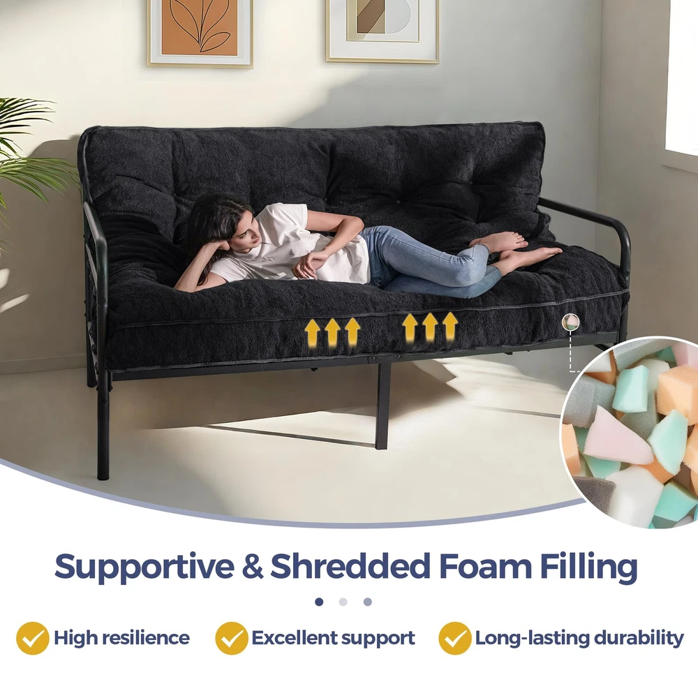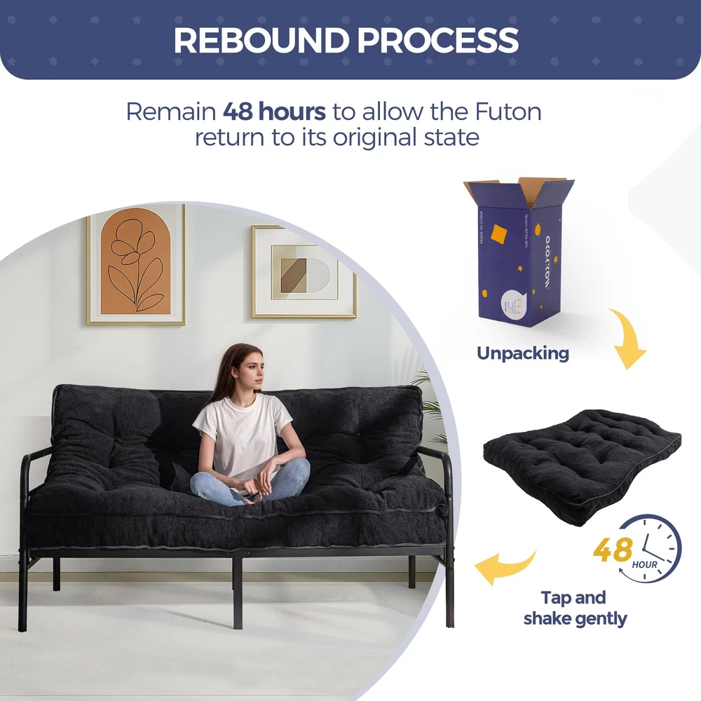 Comfortable and Supportive: The futon is equipped with high-density shredded foam that provide excellent support and comfort. The thickness is about 6 Inch. Whether you're lounging, reading, or sleeping, enjoy a relaxing and comfortable experience with every use Hand-Tufted Craftsmanship: The hand-tufted details are meticulously placed to secure the internal cushioning, preventing any shifting or bunching. This technique not only enhances the futon's durability and stability but also contributes to its refined and elegant appearance, offering both comfort and a polished finish Luxurious Boucle Fabric: Experience the soft, textured comfort of our thick futon mattress, crafted with high-quality boucle fabric. This material not only provides a plush and cozy seating experience but also adds a touch of sophistication and style to any living space Versatile Futon: The futon is versatile enough to be used on futon frames or directly on the floor as a standalone mattress. It can be used as a sofa/bed/floor mattress. Perfect for small apartments, guest rooms, or living rooms, this futon offers practical functionality without sacrificing aesthetics. Important Notice: After unpacking, allow the futon mattress to expand and air out for 48 hours. It will fully return to its original shape and size, making it ready for use.
