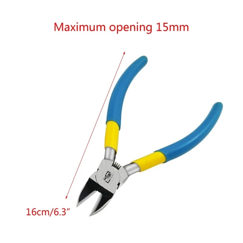 Features: Wire Cutter 6 inch is by carbon steel, solid and durable. Plastic coated handle for comfortable and girp in daily use. Wire cutter spring plier reduces muscle fatigue for easy one-handed operation. Carbon steel material plier provids long-lasting durability and cutting strength. Wire cutters are for beaders, jewelers, electricians and crafters; Specifications: Material:Carbon Steel Total length:160mm/6.3 inch Plier head length:Approx.22mm/0.87in opening:Approx.15mm/0.59in Package Includes: 1xWire Cutter note: Please allow 1-2cm errors due to manual measurement,please make sure that you do not mind before you order. Due to the difference between different monitors, the picture may not reflect the actual color of the item.