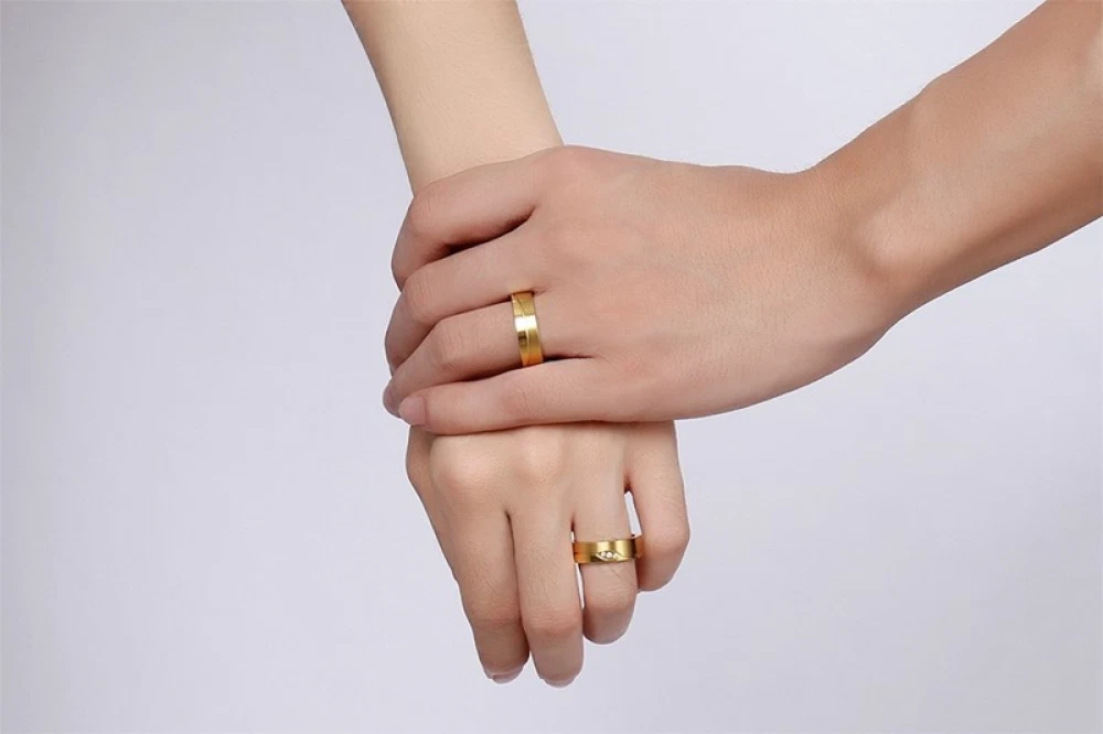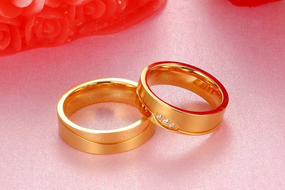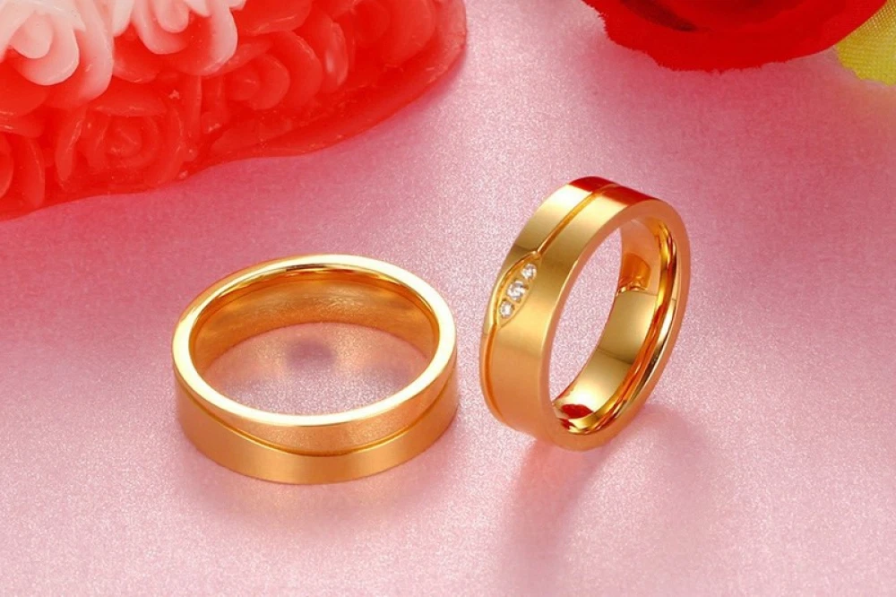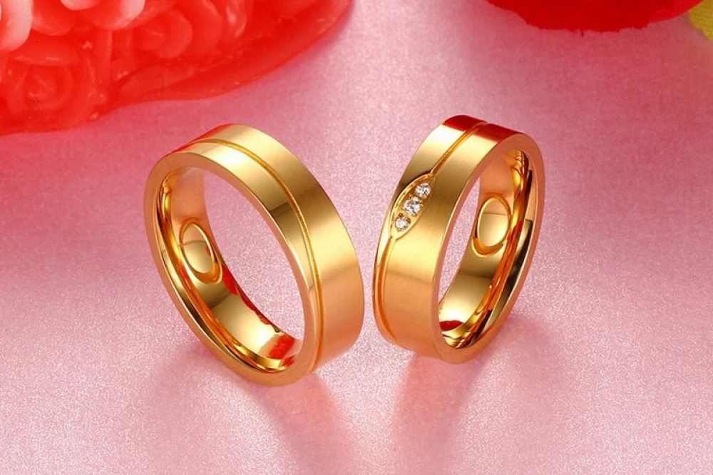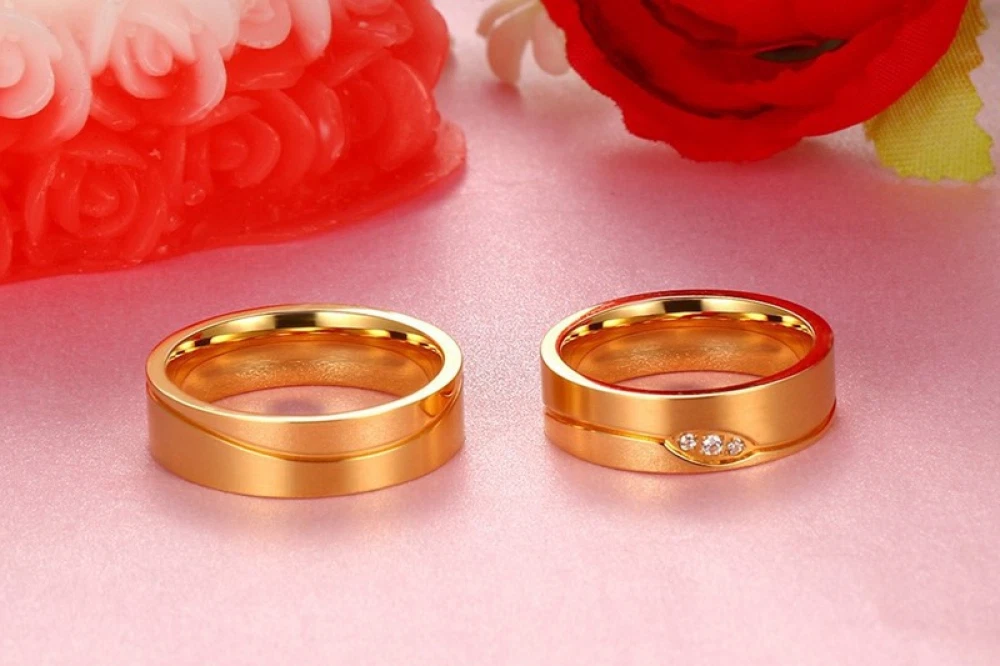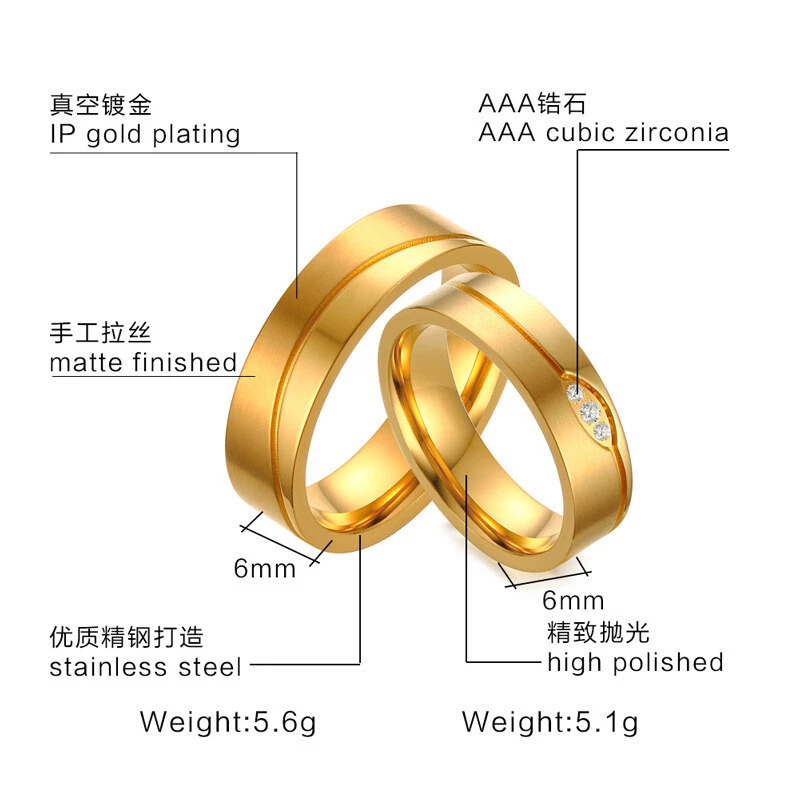 6mm Titanium Steel Couple Ring 18K Gold Inlaid Zircon Jewelry Wedding Band Gift