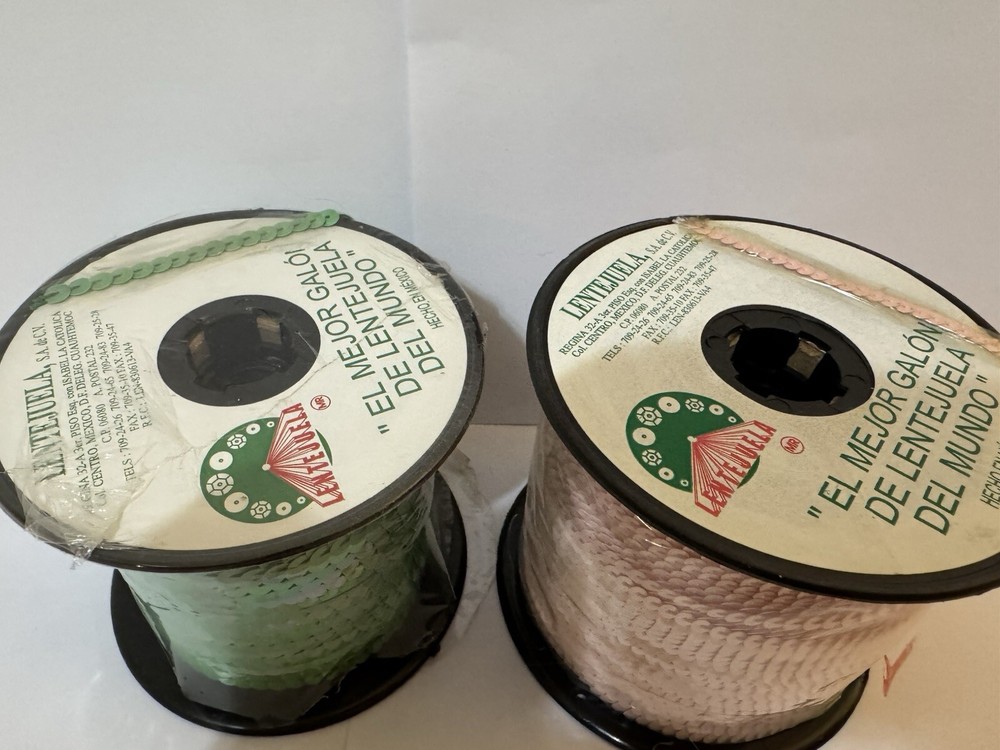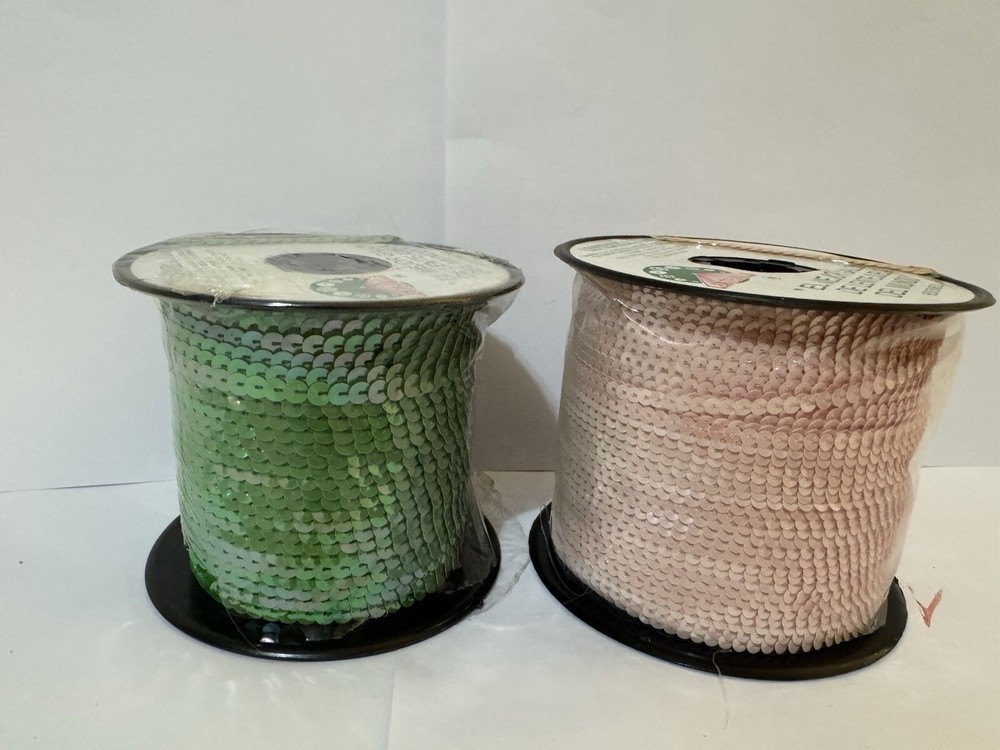 6mm Wide Flat Metallic Strung Sequins Green Pink Sewing Trim by the Yard