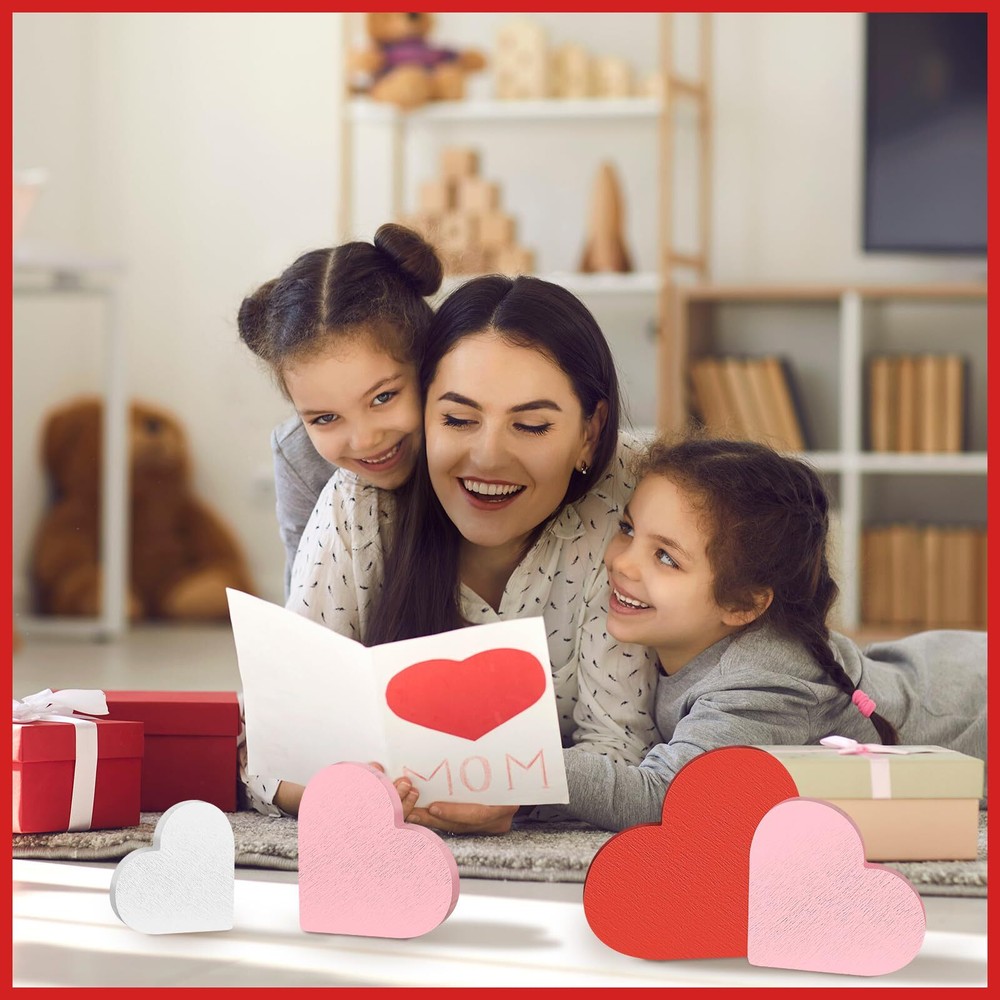 These adorable wooden heart signs are perfect for Valentine's decor! The set of six comes in three charming sizes, making them versatile for tiered trays, shelves, or tabletops. The smooth finish and rustic designs add a cozy, romantic touch to any space. They’re lightweight yet sturdy, and the neutral colors blend beautifully with existing decor. Great quality for the price—definitely a lovely way to celebrate the season!