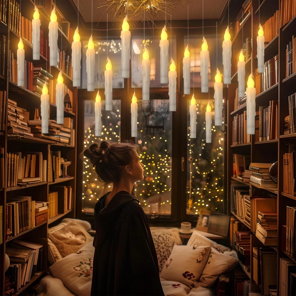 These flameless taper candles are amazing! The built-in timer makes them so convenient—no need to worry about turning them on or off. The updated hanging design works perfectly with fishing lines, creating a magical floating effect for parties or decor. The warm LED glow is so realistic, and the auto on/off cycle saves so much hassle. Perfect for classrooms, bedrooms, or themed events! Super easy to use and absolutely stunning.