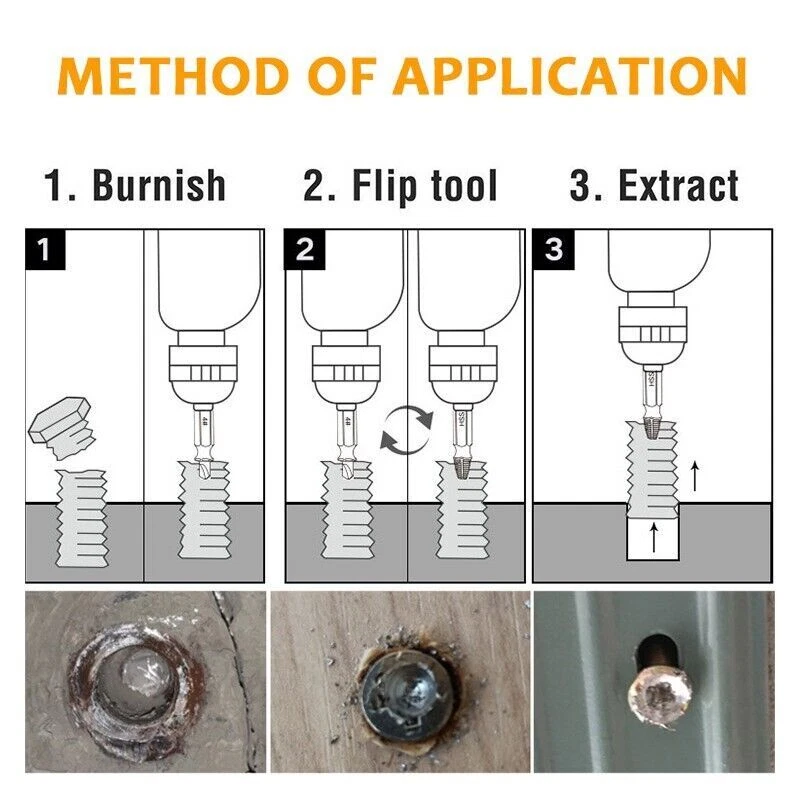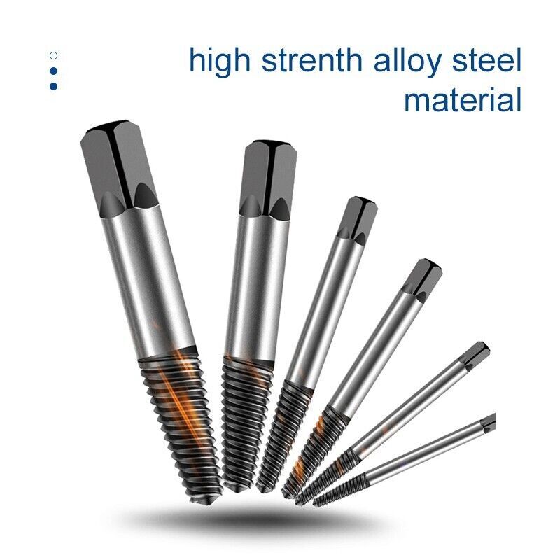 Damaged Screw Extractor Get It Out Drill Bits 6 PCS Tool Set Broken Bolt Remover Premium Material: Our screw extractor is made of high quality bearing steel, surface hardening, making it more durable. With box packaging: 6 sets of screw extractors, size: 1 # / 2 # / 3 # / 4 # / 5 # / 6 #, different sizes can perfectly remove all damage, broken, rusty thread head And bolts. Our screw extract is equipped with a significant red storage box. You don't need to worry about the next time you don't find a single extractor. Simply put the box in a fixed toolbox. Widely used: It can be widely used in home maintenance, cars or mechanical maintenance. It applies to most of the broken bricks stored in the market, and has been applied to most electric hand-rotated universal chucks. Save money: Practical screwdrivers and extraction kits that can be placed in the garage or toolbox. It is a must-have repair tool for each family. When the family needs to fix some things, it can be used directly instead of going to an expensive repair shop. Warm Tips: It is recommended that you use electric manual rotation during use, and then perform at a low speed during use until the break screw is removed. Specifications: Name: Broken Bolt Extractor Material: High Carbon Steel Purchase Options: 6Pcs Applicable To: Removing All Kinds Of Broken Head Bolts And Screws; For Home, Office, Etc. Maintenance. Package Includes: 6Pcs:1#/2#/3#/4#/5#/6#