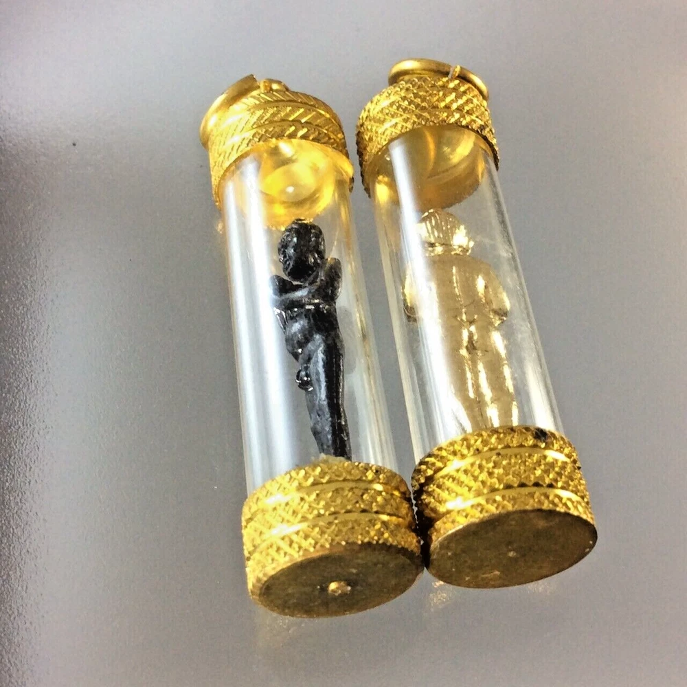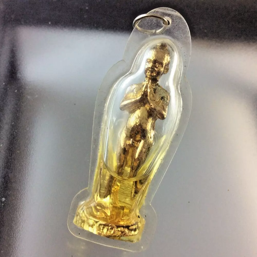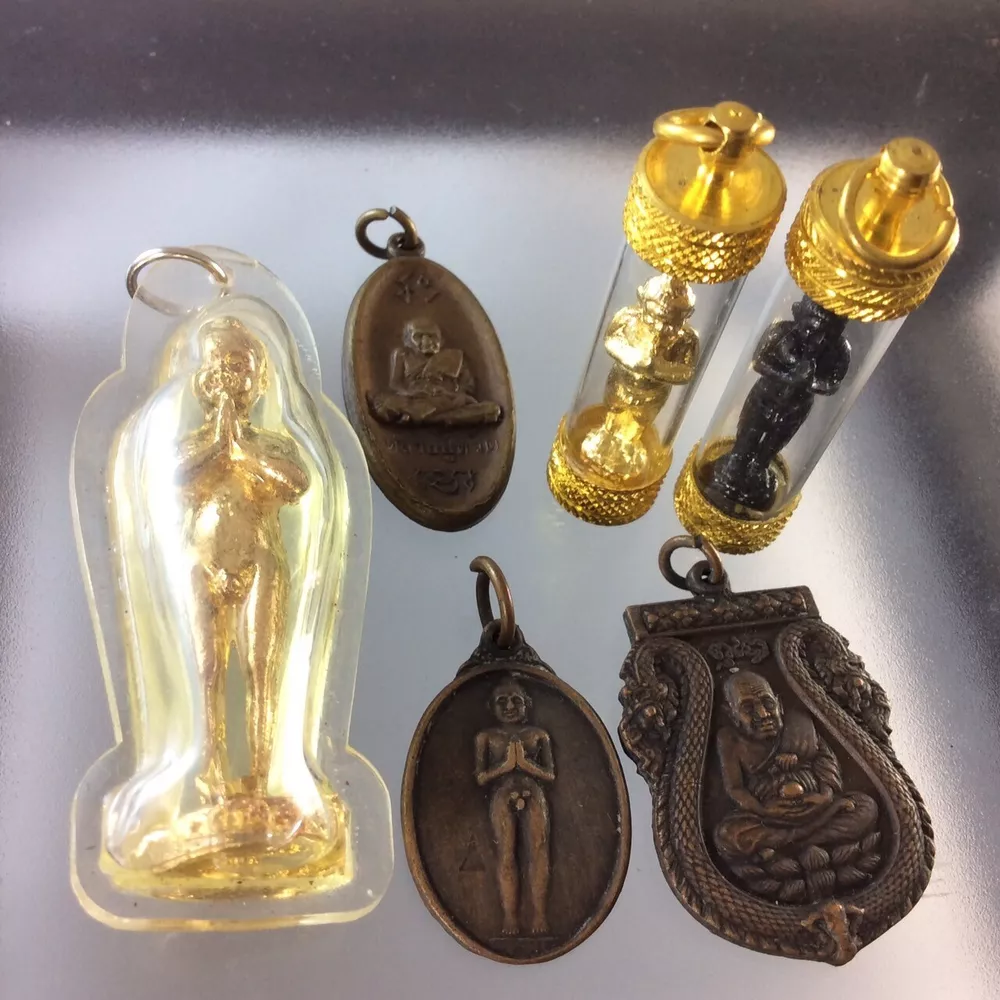 6 PCS AI-KAI WAT JEDEE MAGIC COIN TAKRUT PENDANT LUCK WEALTH RICH TALISMAN Legend of Ai-KAi Wat Jedee Legend has it that Ai Khai was a young novice monk following LP Thuad on his pilgrimage. When LP Thuad came to Wat Chedi, Si Chon district, Nakhon Si Thammarat province, he ordered Ai Khai to stay there and look after the temple on his behalf. Not long after that, Ai Khai died when he was still a boy and his spirit has lived there ever since as a guardian. Ai Khai's spirit always keeps an eye on the temple; whoever goes in without permission or breaks into to the compound to steal things will be frightened away by him. The power of Ai Khai is widely known in Nakhon Si Thammarat and other provinces. People said that during World War II, he frightened the invading foreign soldiers, making sure that they ran away without thinking. Because of the strong power of Ai Khai's spirit, in 2525 BE (1982 CE) people came together to build a statue of Ai Khai using Mai Takian wood (Mai Takian is a spirit inhabited tree in Thai belief) and invited his spirit to reside in the statue. That made Ai Khai's statue especially efficacious, because his spirit will help people with whatever things they pray for. Everyday, many devotees come to worship and make offerings to Ai Khai. They like to make a wish to Ai Khai's statue and many of them had their wish fulfilled; for example they win lottery prizes or find their missing things. That caused Ai Khai's spirit to become very famous. Put on private shelf to help your business or hang on neck, keep in your pocket as convenience . for more lucky good business. FREE!! Shipping with registered mail WORLDWIDE with tracking number . If you have questions, feel free to write me on e B a y message. THANK YOU FOR SHOPPING