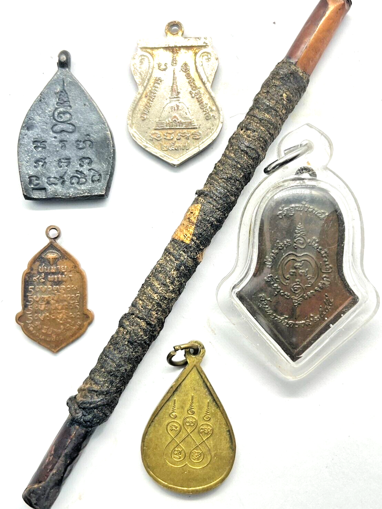 6pcs Thai Amulet Coin TAKRUT Buddha Monk Pendant Protective Charm COLLECTIBLE This listing features a 6pcs set of Thai Amulet Coins and Takrut , each intricately designed and blessed with spiritual significance. The set includes amulets depicting Buddha, a revered monk, and a guardian deity, along with a traditional Takrut charm. Made from high-quality materials such as brass, copper, and metal alloys, these sacred items are perfect for protection, good luck, and prosperity. The vintage craftsmanship reflects the unique style of Thai Buddhist culture, making it an ideal addition to any amulet collection or as a meaningful gift. These amulets are believed to bring blessings, ward off negative energy, and offer spiritual protection to the wearer. Each piece carries a deep symbolic meaning, blessed by monks and rooted in ancient traditions. Perfect for spiritual ceremonies, everyday wear, or display, this set is a rare find for collectors and enthusiasts alike. Don’t miss this opportunity to own a genuine piece of Thai spiritual heritage . Please refer to the detailed photos for condition and authenticity. 📌 Seller Policies · For US Buyers : Starting August 29, 2025 , all imports to the US may be subject to duties/taxes, regardless of value. ✅ No worries! We will handle and pay all customs duties/taxes on your behalf. ➡️ This means you will not need to pay any additional fees when your item arrives. ⚠️ This policy applies only to US buyers. Other countries may still require the recipient to pay local customs duties/taxes according to their regulations. · Country of Origin & Tracking : We always provide accurate Country of Origin information. A tracking number will be available after shipping so you can follow your order easily. · Shipping : ✈️ FREE WORLDWIDE SHIPPING via Registered Mail. 📦 Includes a tracking number for peace of mind. · Customer Support : If you have any questions, please feel free to contact us via eBay message. 💖 THANK YOU FOR SHOPPING WITH US! 💖