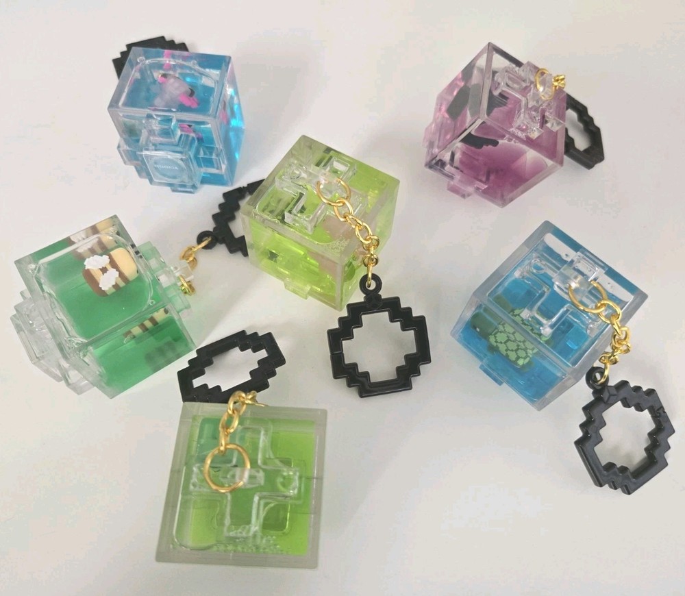All 6 individual figures The product is a set of 6 Minecraft Water Cube Floating Figure Keychains Charms Backpack Hangers. Each keychain charm features a unique floating figure design inspired by the popular Minecraft franchise. These accessories are perfect for fans of Minecraft to add to their collection or use to decorate their backpacks, keys, or other items. They are great for showcasing love for the game and adding a touch of creativity to everyday items.