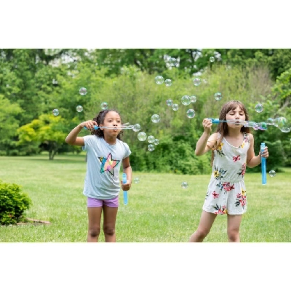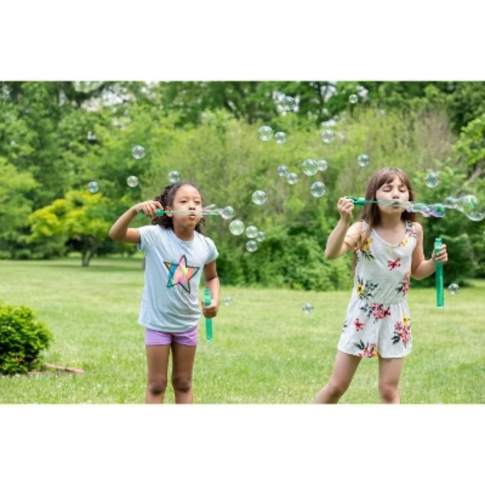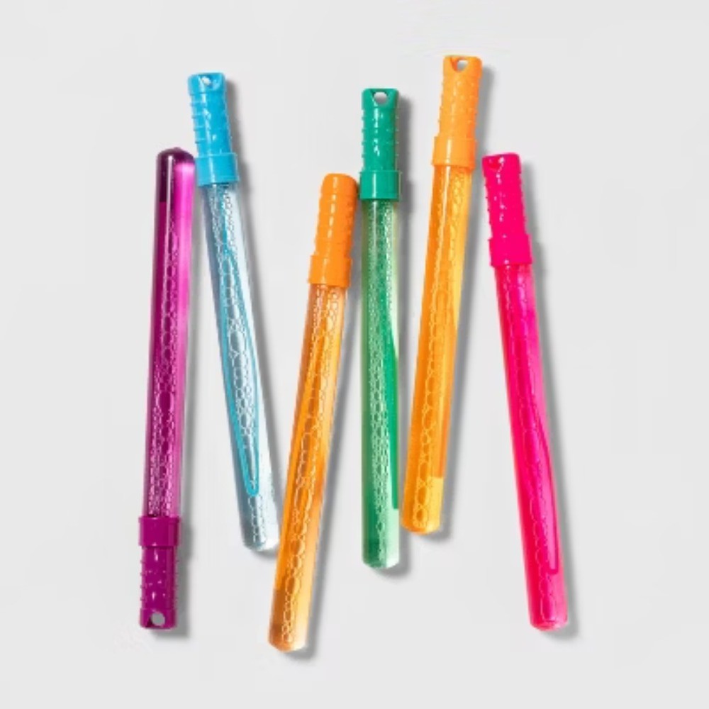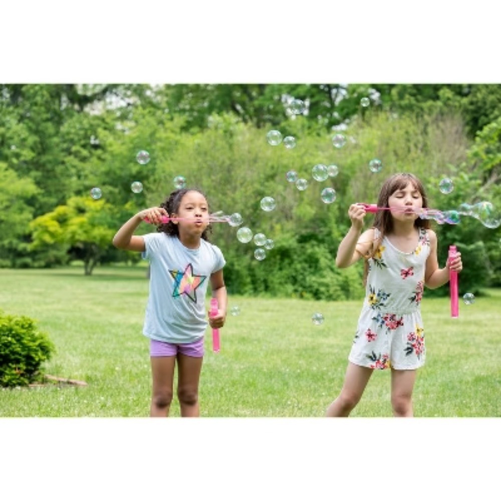 Description Sunny days with kids at play call for the Bubble Wand Set from Sun Squad™. With six individual wands, this set is perfect for family days or friendly gatherings so everyone can get in on the bubble-tastic fun. Each wand holds four ounces of bubbles and boasts a different color, offering bright style that also makes it easy to keep track of whose wand is whose. Plus, an integrated hole at the end of each wand lends itself to hanging on a lanyard or carabiner if you need a hands-free storage option for the time being. Whether you’re playing backyard games or need activities for a beach day, this pack of bubble wands is sure to do the trick for family-friendly entertainment. highlights Bubble wands make for an easy and fun outdoor activity 6 individual wands in bright colors 4oz bubbles in each wand Dye-free, non-toxic bubbles Ages 3+