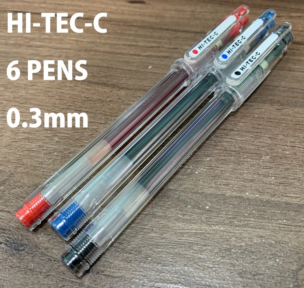 6x Hi-Tec-C Roller Ball Gel Pens Buyer receives 6 pens. Great pens with great ink!! 0.3mm in 3 colors - black, blue and red. The fine tipped point of Pilot Hi-Tec C pens allow you to write with incredible precision. Moreover the ink is chemically formulated so that it will not bleed after it dries. Newly developed ink prevents feathering and provides the smoothest writing every time. Gel Ink Pen that allows extremely micro fine and ultra fine writing. Also available in 0.25 and 0.4 mm black if you specify before/upon purchase. I will otherwise send 0.3mm by default. Lovely, Beautiful, Cute and Practical! Great items for yourself or as gifts! Smooth and fine writing with beautiful colors! Great pens for your work or study ! If you have any special request, just send a message! Airmail delivery from Taiwan to Worldwide For delivery estimate to your country, please see below.