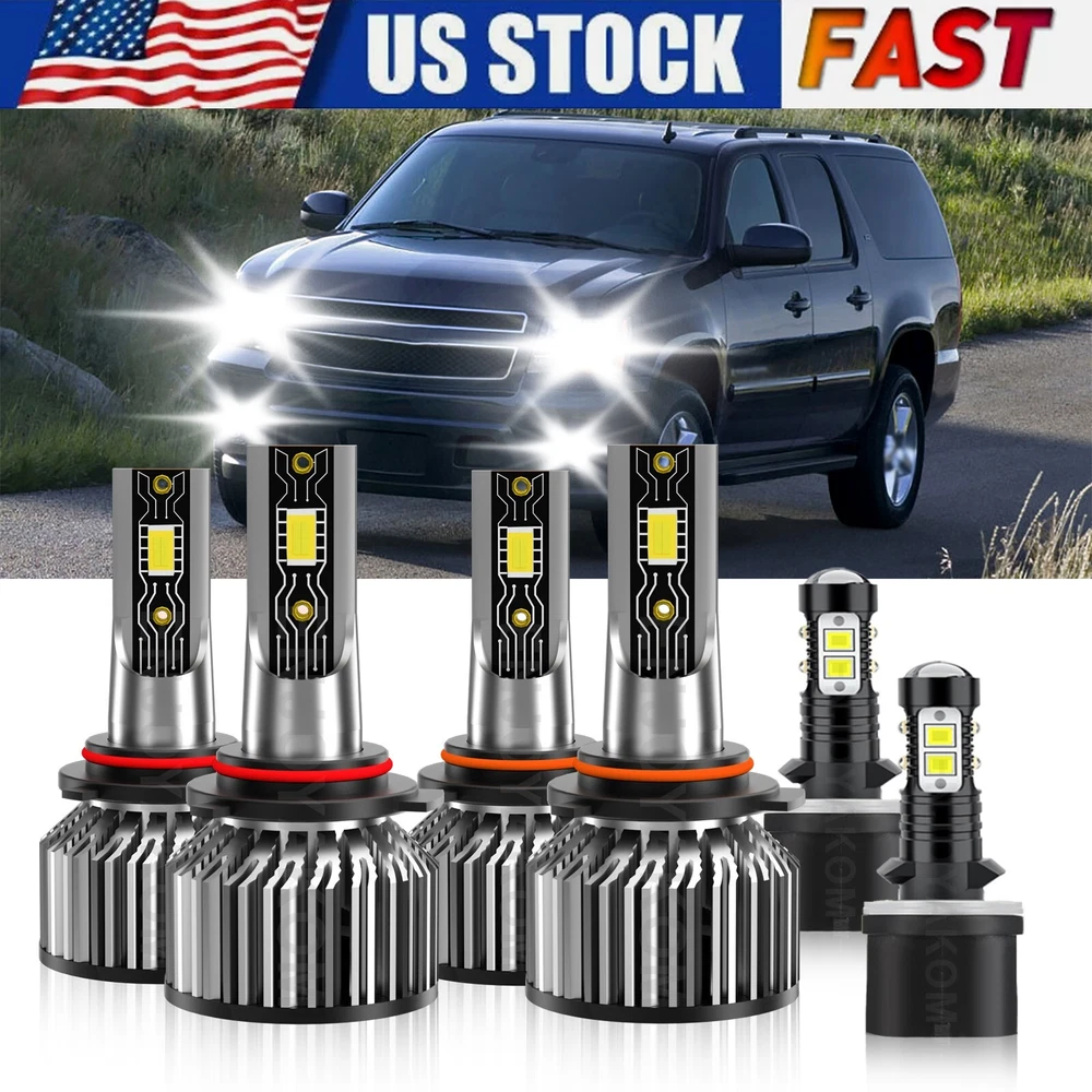 6x LED Headlight High/Low Beam+Fog Light Bulbs For Chevy Suburban 2500 2000-2006