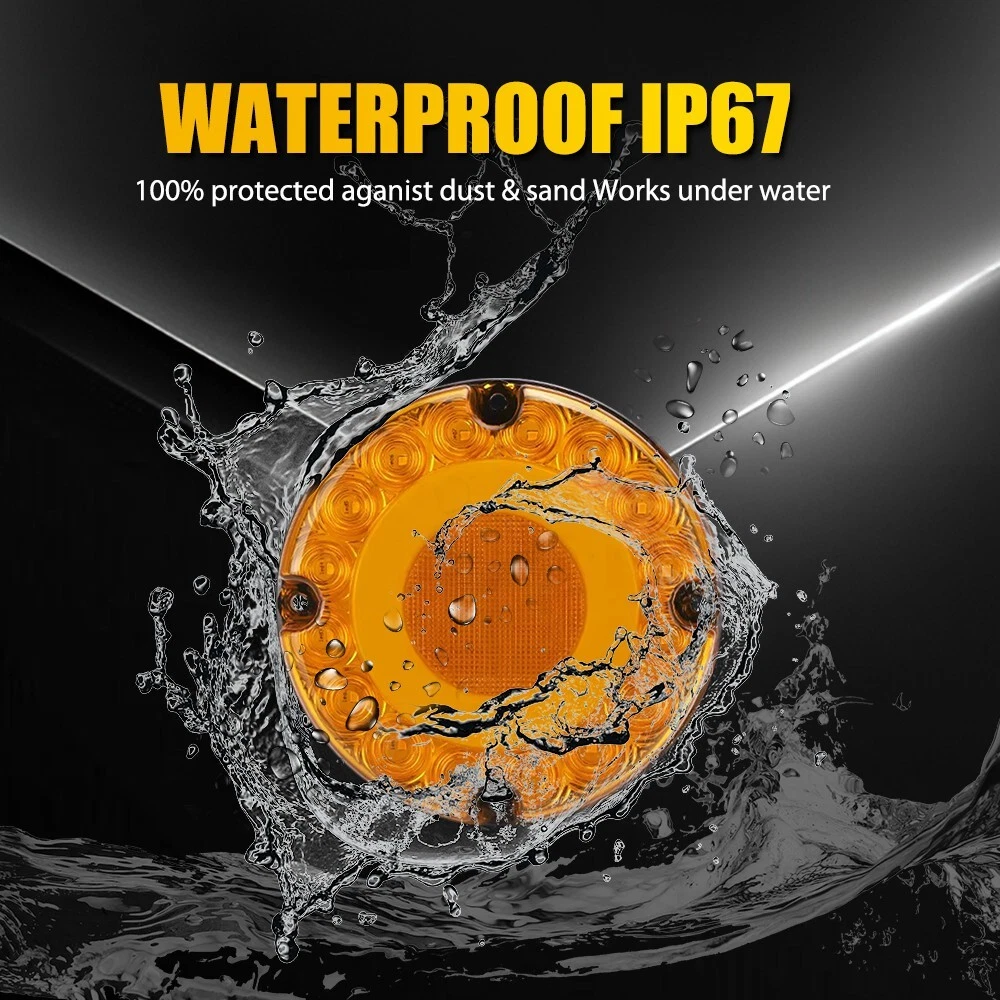 Features 5: Warm Notice Blue wire: Flashing amber light Features 3: Waterproof Package Include: LED tail lights*2 Wire: 4-lines Lifespan: 50,000h+ Fit for 2: buses, vans, lorry, car, rv, bulldozer, crane, etc Features 4: Wide Application Manufacturer Warranty: 1 Years gtin13: Does not apply UPC: Does not apply LED Quantity: 36 Brand: AUXITO Red wire: Amber light on the outer ring of running light Black wire: Negative Manufacturer Part Number: Does not apply Waterproof Grade: IP67 Fit for 1: Suitable for truck, trailers, semi truck, caravans, campers, Material: ABS, PC Features 1: High Brightness Size: 7inch round Type: Tail Light Assembly Voltage: 12-24V Fitment Type: Direct Replacement Light Color: Amber Features 2: Superior Quality Yellow wire: Amber light in the inner circle of the brake light Functions: Brake light, tail light, turn signals, etc
