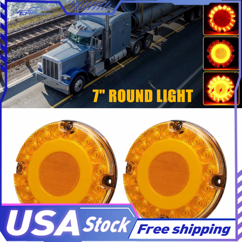 7" 2x Round Amber LED Lights Tail Brake Turn Signal Lamps DRL For Truck Trailer