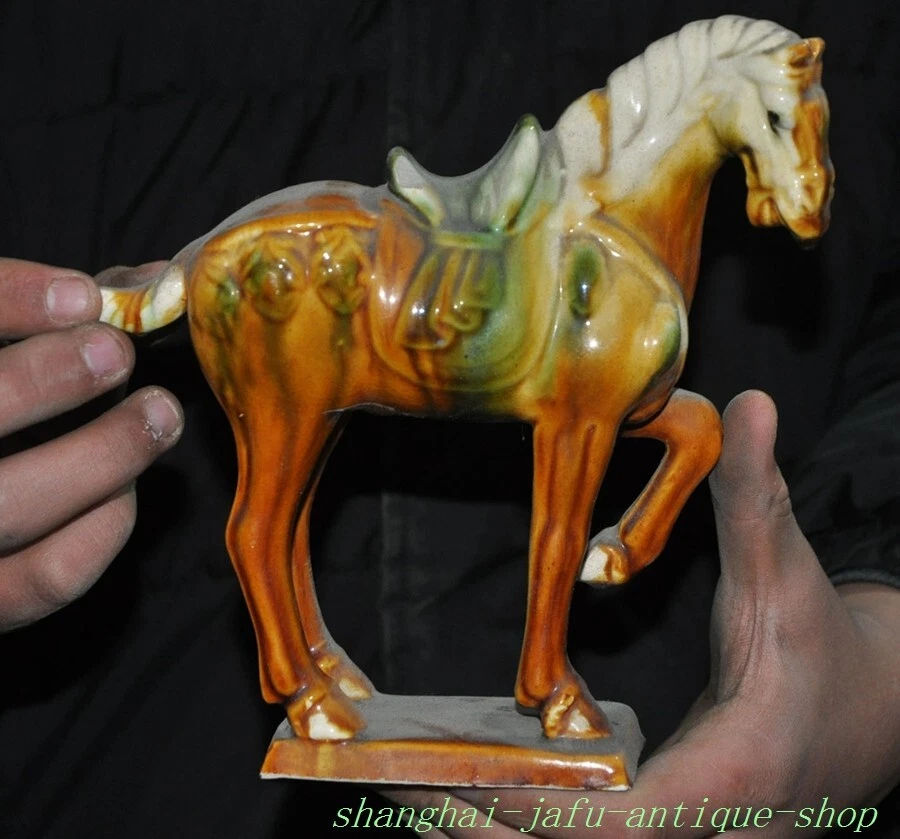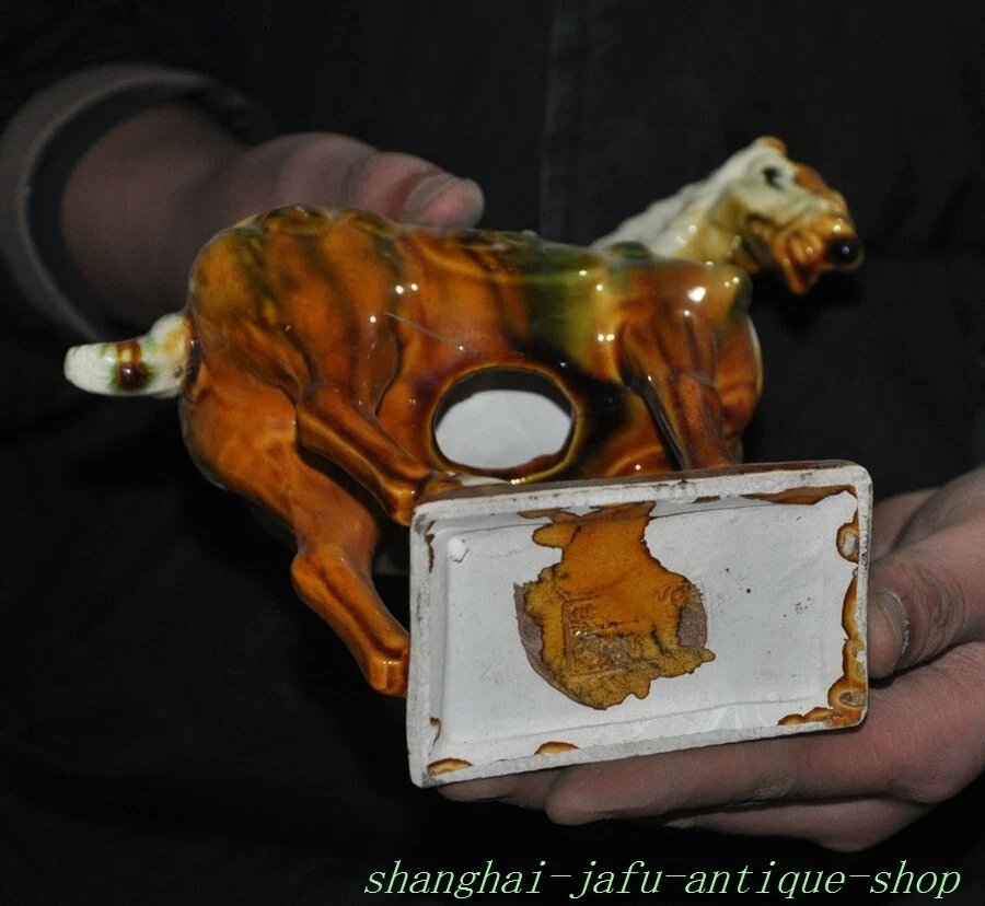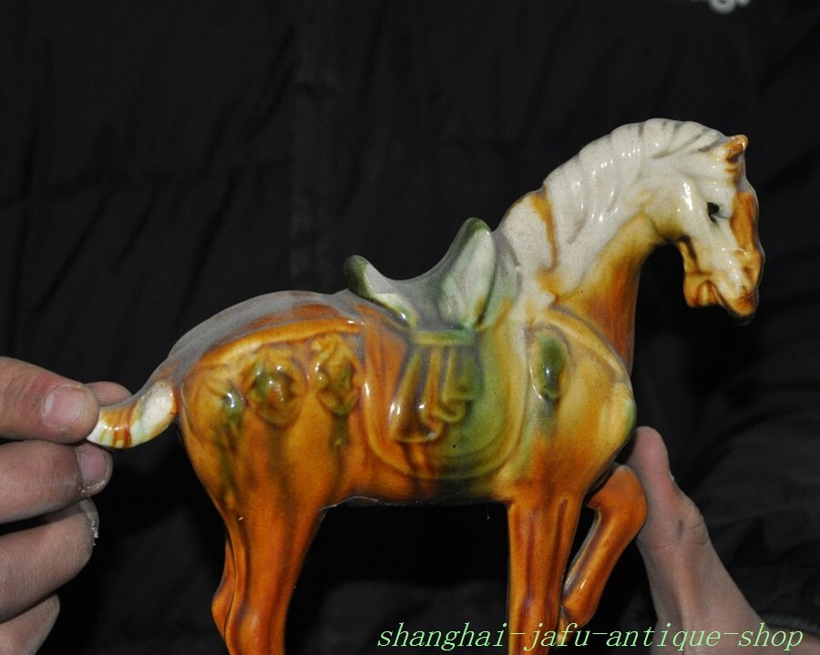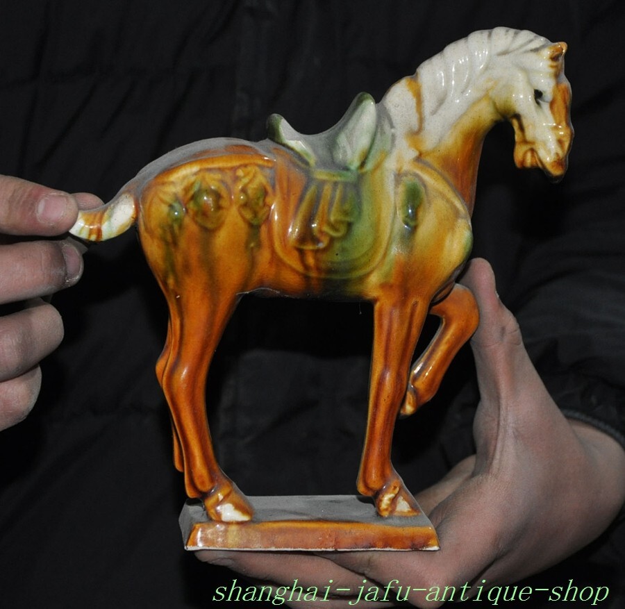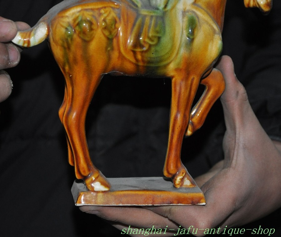 Here is an 7" Chinese Tangsancai porcelain Feng Shui Luck animal Successful horse statue , As you can see the image, It is in good condition, and was created by skilled craftsmen in traditional style with fine handcrafts . This is a great piece of valuable collection, a valuable personal alter or a very good present. the handwork is very fine with incredible detailing. Don't miss out this chance to get it .Wish you good luck! Size: Height: 7 inch .Long: 7 inch . breadth: 2.4 inch Size: Height: 17.5 cm .Long: 17.5 cm . breadth:6 cm Weight: 1.8 KG----included the weight of packing materials Materials: Tangsancai porcelain Condition: Good condition Origin: China Shipping cost by EMS Express Mail ( 7------15 days ) : $Free yu