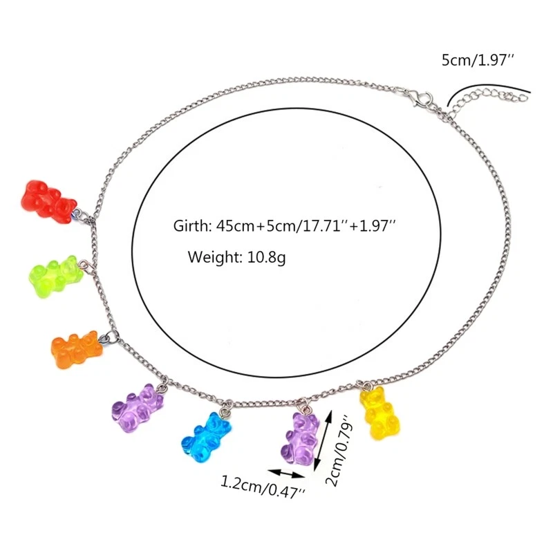 Features: and high Multi-function: It can be worn alone or stacked at will to enjoy the fun of DIY. It can be used as a necklace or a sweater chain. It is Very practical. What you will get is a handmade candy bear necklace ,which can your different colors skirt, dresses, shirts, coats to present High Qualty: metal alloy, resin, safe material, to your body. Size: The cartoon nacklace is Approx.45+5cm/17.71+1.97inch,linked by lobster closure,easy to wear and take off.The color will not change. Perfert Gifts: Colorful animal necklace can be excellent to girlfriend,wife,best friend,sister,daughter,mother on Birthday,Mother's Day,Valentine's Day,Party,Graduation Gifts,Christmas. Specifications: Resin Girth:Approx.45+5cm/17.71+1.97inch Pendant:Approx.1.2x2cm/0.47x0.79inch Extension Chain:Approx.5cm/1.97inch Package Includes: 1 Piece Necklace note: Please allow 0-1cm errors due to manual measurement, make sure that you do not mind before you order. Due to the difference between different monitors, the picture may not reflect the actual color of the item.