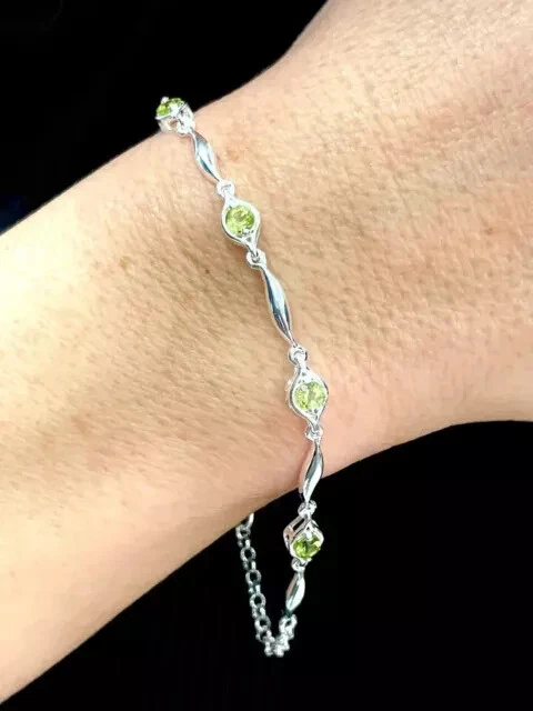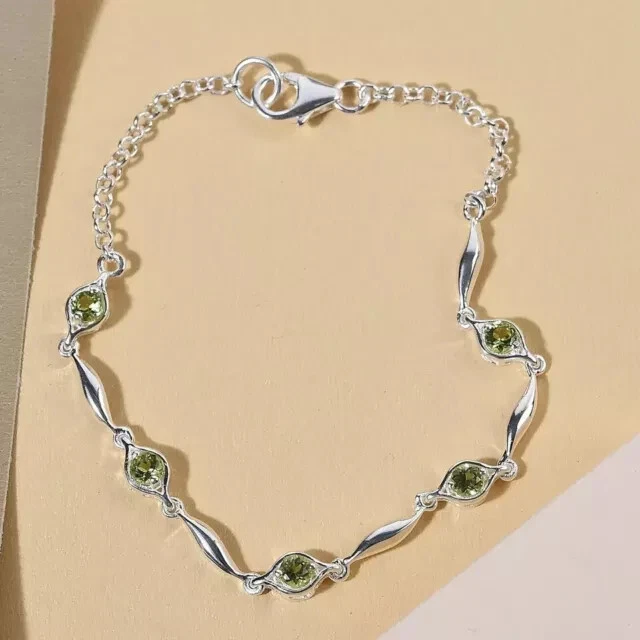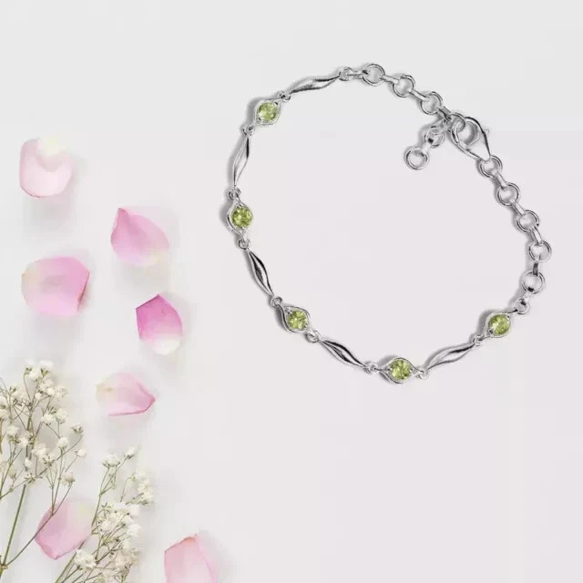 Main Stone Color: Green Main Stone Treatment: Not Enhanced Era: Undated Metal Purity: 925 Type: Bracelet Material: Stone, Metal Personalize: Yes Gemstone Clarity Grade: NA Country of Origin: India Main Stone Shape: Round Main Stone Length: As per picture Style: Tennis Occasion: Anniversary, Birthday, Christening, Christmas, Engagement, Graduation, Mother's Day, Valentine's Day, Wedding Number of Gemstones: As Per Picture Setting Style: Prong Brand: karunas-76 Wholesale: Yes Secondary Stone: Diamond Chain Type: Cable Item Length: As per picture Theme: Beauty Charm Type: Snap Country/Region of Manufacture: India Sizable: Yes Main Stone Depth: As per picture Main Stone Width: As per picture Seller Warranty: Yes Signed: No Closure: Snap Vintage: No Color: White Handmade: Yes Main Stone: Peridot Base Metal: Sterling Silver Antique: No Features: Engraved Customized: Yes Shape: Round Main Stone Creation: Simulated Cut Grade: Excellent Metal: Sterling Silver