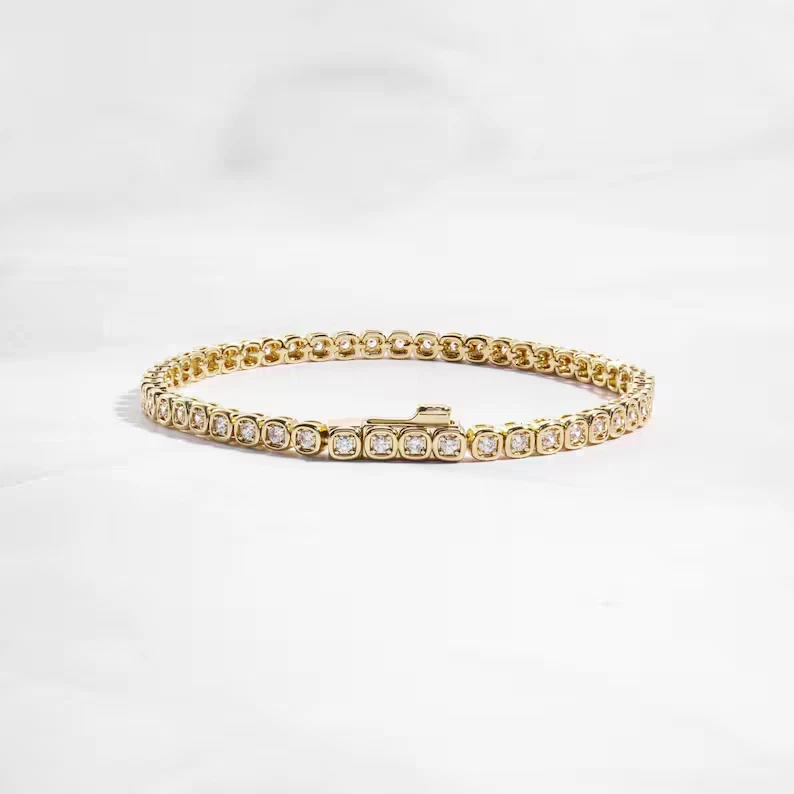Item Length:7.5 inAntique:NoMain Stone Color:WhiteChain Type:Tennis LinkHandmade:YesMetal:Sterling SilverColor:YellowCountry/Region of Manufacture:IndiaCharm Type:SnapOccasion:Anniversary, Birthday, Christmas, Engagement, Mother's Day, Valentine's Day, WeddingSigned:NoMain Stone Creation:SimulatedMain Stone Depth:As Per ImageSeller Notes:“All color stones Available, Customized As Per Buyer Requirments.”Shape:As Per ImageGemstone Clarity Grade:Eye CleanFeatures:Adjustable, Engraved, Nickel-FreeSetting Style:ProngStyle:TennisCountry of Origin:UnknownMain Stone:Simulated DiamondWholesale:YesSeller Warranty:YesBrand:KJJ1000Customized:YesMain Stone Width:As Per ImageSecondary Stone:Simulated DiamondNumber of Gemstones:Not AppliedPersonalization Instructions:As Per Buyer's RequirementMain Stone Shape:RoundType:BraceletMain Stone Treatment:Not EnhancedClosure:Push LockMaterial:StonesUPC:Does Not ApplyMain Stone Length:As Per Imagegtin13:Does Not ApplyTheme:Angels, Art, Beauty, Cartoon, TV & Movie Characters, Coins & Money, Fairytale & Fantasy, Family & Friends, Fashion & Costumes, Flowers & Plants, Love, MagicCut Grade:ExcellentBase Metal:Sterling SilverPersonalize:YesMetal Purity:925Vintage:No