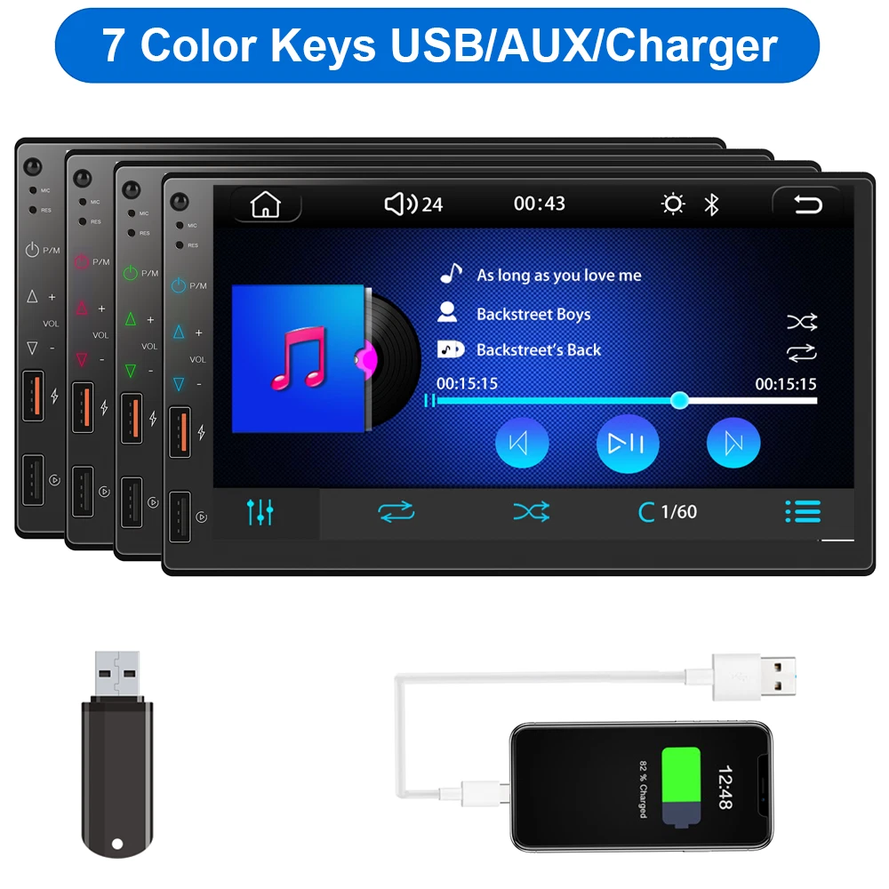 Universal 7" Double 2Din Touch Screen Car Stereo Radio MP5 Player Wireless Apple CarPlay & Android Auto Mirror Link EQ DSP Note:Please Check Radio's Size with Car Dashboard Before Buying !!! Features: 1. Wireless/Wired Apple CarPlay & Android Auto 2. Smartphone Mirror Link Android/iOS 3. 30 Band EQ, DSP 4. Bluetooth 5.0 5. 7 inch Capacitve Multi-touch Screen 6. Reverse Rear View Camera Input 7. Audio Output, Video Output, Audio Output, Audio Input 8. Original Car Steering Wheel Control 9. AM/FM RDS Radio 10. AUX Input, U disk (audio/video/photo) 11. QC3.0 phone fast charging port 12. 7 Colors Key Light Product details : Model: 7247 Unit Size: Double 2 Din Voltage: DC 12V Type: Car MP5 Player System: Linux Configuration: Full capacitive touch screen Solution: 8268K Screen Size: 7 inches Resolution: 1024x600 Panel Size: 173x96mm/178x100mm Lighting Panel: Colored lights Host Depth: 96mm Single Weight: 680g Mirrorlink: Mirrorlink (Android / iPhone) Apple Carplay & Android auto: Support wireless or wire connection Radio: FM / AM RDS Radio Chip: ZT0811 Power: 60W Audio Output: 4x 50W Temperature: -10 ~ 60 ℃ Reverse Image: Support Brake Reminder: Support Steering Wheel Control: Support Bluetooth: Version 5.0 Radio Frequency: FM 87.5 ~ 108MHz AM 522 ~ 1620KHZ Video Output: Support USB Interface: Front panel USB 2.0 Reset Button: Have Button: Touch button RCA Terminal: 2 audio output, 1 reverse input, 1 video input, 2 video output AUX Input: Have Audio Format: MP3 / WMA / AAC / APE / OGG / M4A / RA / WAV Video Format: H264 DIVX HD (720P 1080I 1080P) AVI / FLV / MKV / RMVB / MPEG / ASF / TS / H264 / QT Picture Format: JPEG / PNG / BMP / GIF / TIFF Language: English / Spanish / Portuguese / Simplified Chinese / Chinese / Traditional Chinese / German / French / Turkish / Japanese / Russian / Italian / Polish / Dutch / Danish / Greek / Israelis Package Included: 1 x Car MP5 Player 2 x Power Cable 1 x Microphone 1 x User Manual Payment 1. We only accept payment via PayPal, other payment is not acceptable. 2. Please make sure your shipping address is the same of your PayPal address before you pay. Shipping 1. We ship to Worldwide,e xcluded some far away places. 2. We only ship to confirmed PAYPAL address; your PAYPAL address must match your Shipping address. 3. Any non-received items caused by invalid address registered on PayPal are not in our full refund or replacement policy. Shipping fee has including the local handing and packaging fee. 4. All the items will be shipping within 1-2 working days after receiving the payment, except some holidays. 5. When the shipping method is express delivery, some areas need to pay remote fees to the courier company. Taxes, Customs & Duties 1. Some countries are required to collect customs duties. Please confirm your local customs duties before placing orders. 2. We will not be responsible for any custom delay or tax, because transit time is highly depended and provided by postal Service. Returns 1. If you have not satisfied as you received the item, please return it within 30 days for a replacement or money back. Please contact us before you return it. 2. All returned items must be in the original packaging with all components and accessories included, and you must provide us the return shipping information (The shipment or the tracking number) 3. Return shipping fee is to be paid by the buyers. We will not be responsible for any custom duty or import tax. Warranty 1.One Year Manufacturer's Warranty for defective items (excluding items damaged and/or misused after receipt). 2.Defective items must be reported and returned to us within the warranty period (and in the original packaging, if possible). You must tell us what the defect is and give us your eBay ID. We do not repair or replace items with an expired warranty. Feedback