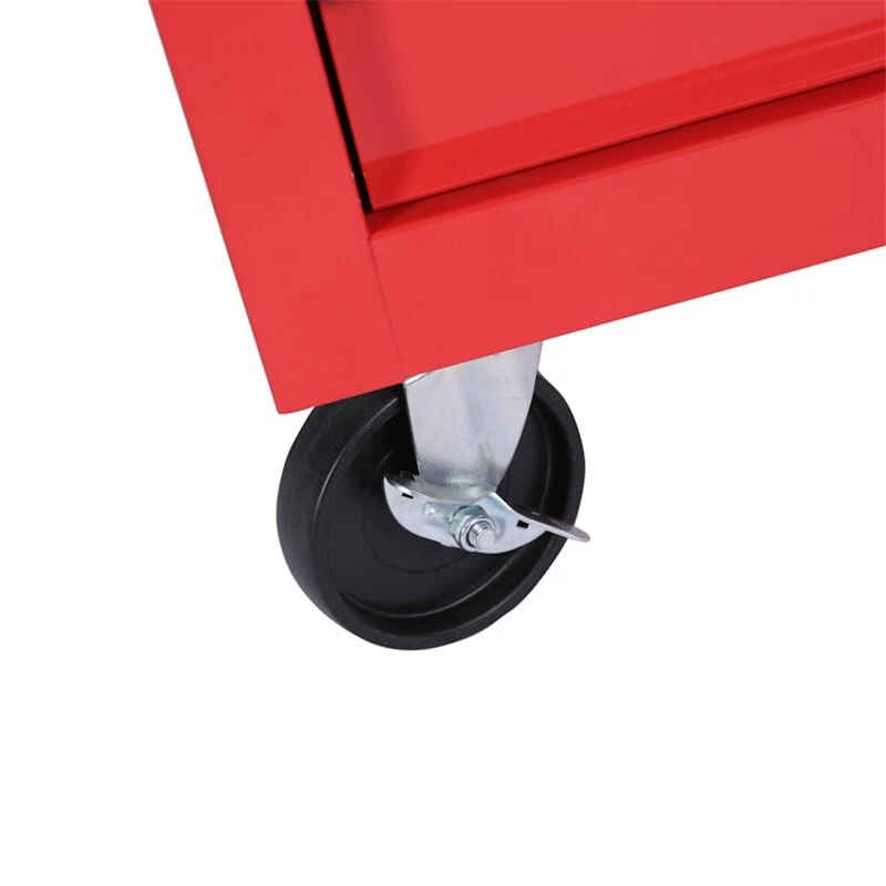 Features and Details : The ARTMAN tool trolley is equipped with a total of 7 drawers . The tool box is also lockable and can be used as a removable, attachable and mobile case attachment The opening and closing of the drawers of the tool cabinet is very gentle thanks to the ball-bearing drawers. The robust and powder-coated steel construction is used for high wear resistance. This assembly trolley has 4 steering wheels, 2 of which with parking brakes, so you can move the trolley freely in the garage, but also stop in one place Specification: Color:Red Material:Cold Rolled Steel Surface Finish :Powder Coating Casters:4" Casters (2PCS with brake and 2PCS without brake) Size :24.2*12.9*29.9inch Drawers Dimension :19.9*10.9*3.1inch Net Weight:25KG