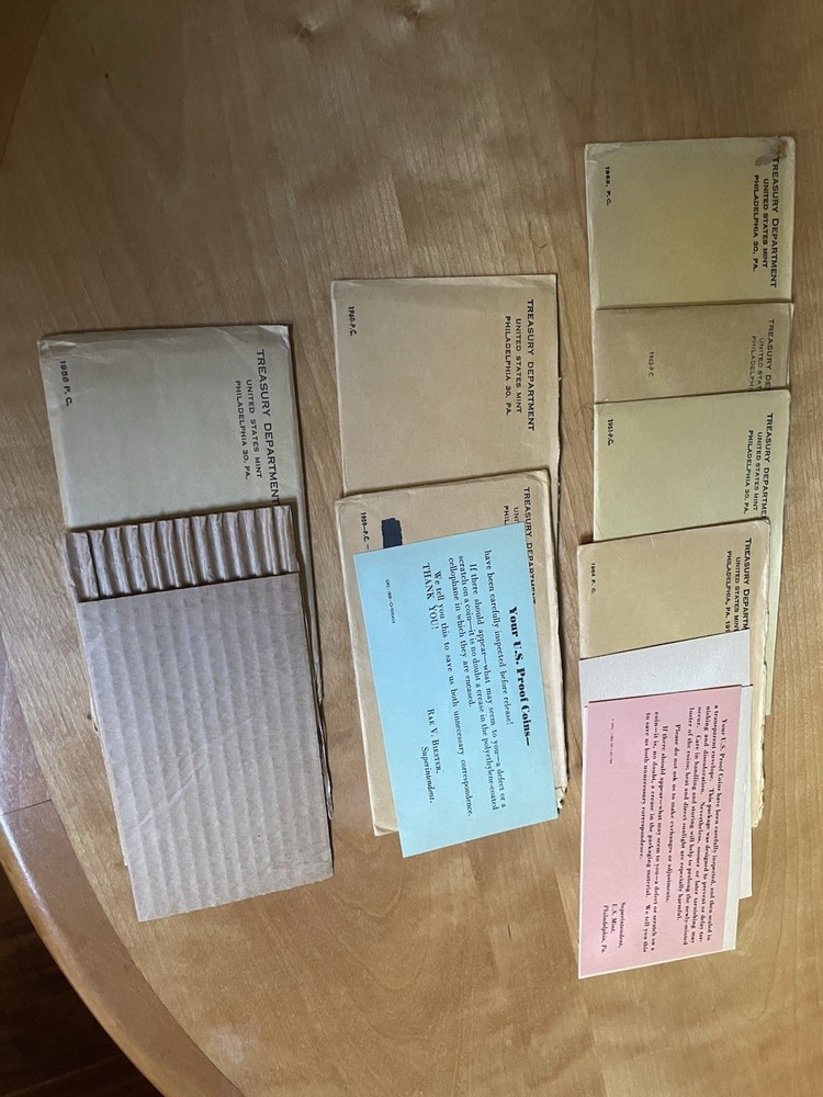 Lot of (7) Varied Years US Proof Set Envelopes -NO Coins, EMPTY W/Boards & COA 1956, 1959,1960, 1961, 1962, 1963, 1964