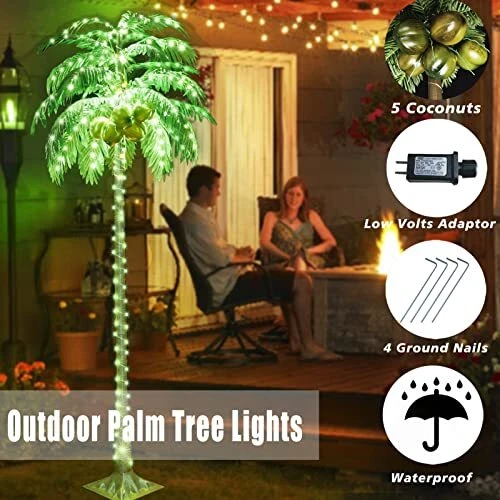 Return Policy Fast Delivery Trusted seller 7 FT Color Changing LED Palm Tree with Coconuts, Remote Control - for Pool, Beach, Yard, Party Decor Product Description Color Changing Palm Tree with 5 Coconuts: The multicolor coconut tree is designed by brown straight trunk and green palm fronds with color changing LED lights, can add some tropical style to your patio, pool, Hawaiian jungle party, Tiki bar, etc Updated 32 Keys Remote Control: The colorful palm tree lights can be controlled with remote. You can customize the color of the LED tropical palm tree, set up the time(4 hours on, 6 hours on, 8 hours on) and control the brightness of the lights 18 Colors and 7 Lighting Modes: 16 different solid single color, 2 combination colors (Red White Blue & Colorful), and 7 dynamic lighting modes (twinkling and flashing). You can switch the led lights from cozy to cheerful blinking Artificial palm tree Outdoor Decoration: The package contains ground nails that can make the palm tree stand steadily outdoors. IP44 waterproof functions make it more suitable for outside use Widely Application: Wver on the beach, swimming pool, yard, garden, party, home, office, indoor or outdoor, and whenever winter or summer, daytime or holiday, always bring you the Hawaiian tropical happiness Easy to Assemble: The palm tree is prelit. You just need screw the trunk into the base, and separately connect 2 trunks and the male & female plug. Then shape the leaves as you want. You can use it to decorate your room and luau aloha party Specification: The faux palm tree with lights is 6 FT height, designed with 170 long life span LED lights, powered by 29 V low voltage adaptor, which is more save-energy Shipping Returns Payment Shipping Shipping is FREE to all addresses other than APO/PO boxes in the lower 48 states. All our stock ships from US-based warehouses. Shipped via USPS or UPS (depending on location and package weight) Unless stated otherwise, all orders will ship within 24-72 hours of your payment being processed. Check our feedback to see the great reviews of FAST shipping we offer. Returns Seller does not accept returns Payment We currently accept payment via eBay managed payments only. Once payment is cleared, we will dispatch your shipment within 1-3 business days. Please refer to the "Shipping" tab for more information regarding shipping speed to your destination.