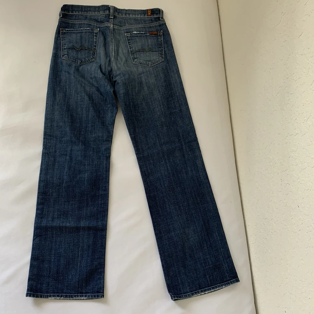 Fit: Relaxed Features: Stretch Type: Jeans Closure: Button Style: Straight Personalize: No Color: Blue Pattern: Solid Country/Region of Manufacture: United States Handmade: No Fabric Wash: Medium Pocket Type: 5-Pocket Design Garment Care: Machine Washable Waist Size: 32 in UPC: Does not apply Rise: Mid (10-12 in) Brand: 7 For All Mankind Material: 98% Cotton, 2% Spandex, Cotton Inseam: 33 in Theme: USA Season: Winter, Summer, Spring, Fall Fabric Type: Denim Accents: Button Vintage: No Department: Men gtin13: Does not apply Size: 32 Size Type: Regular