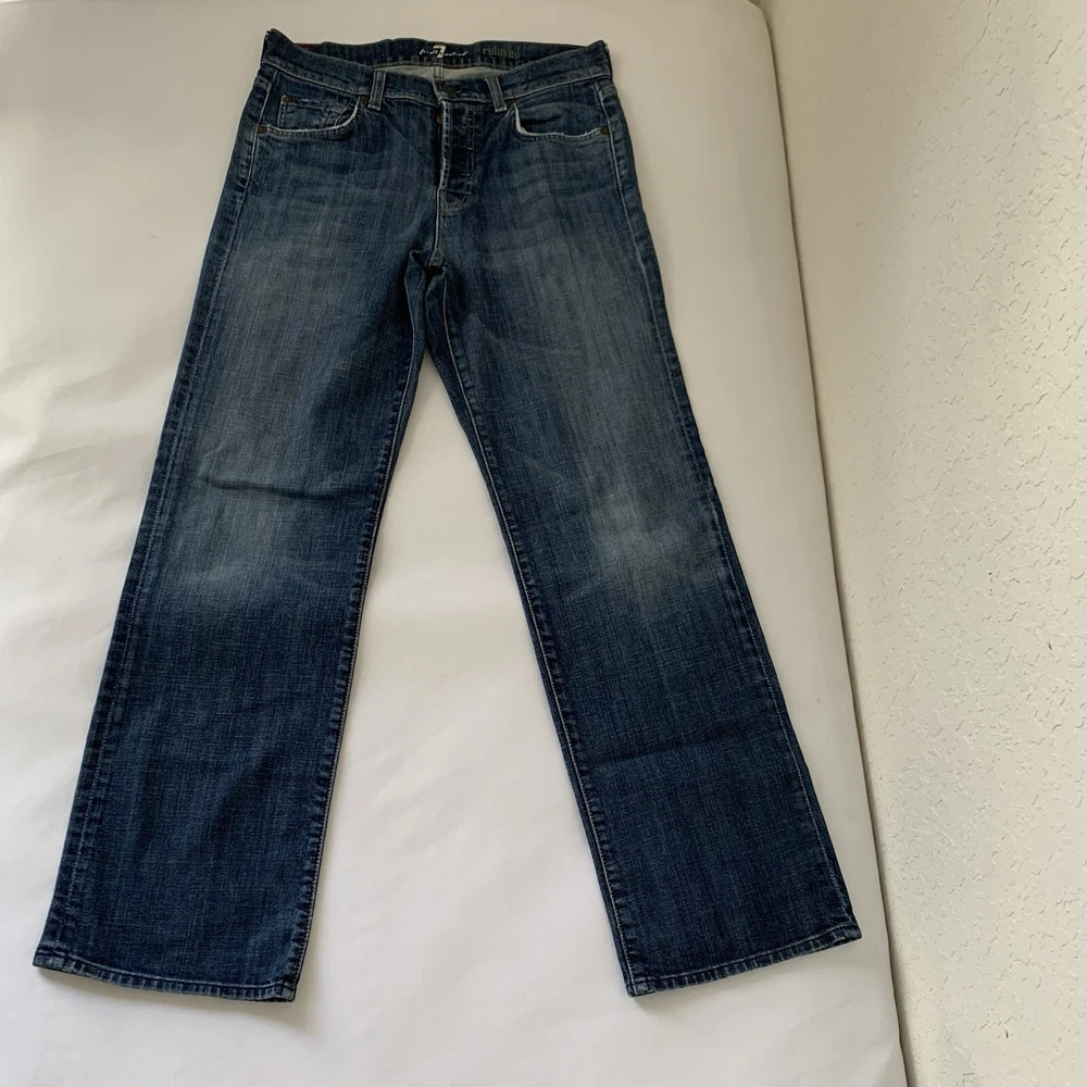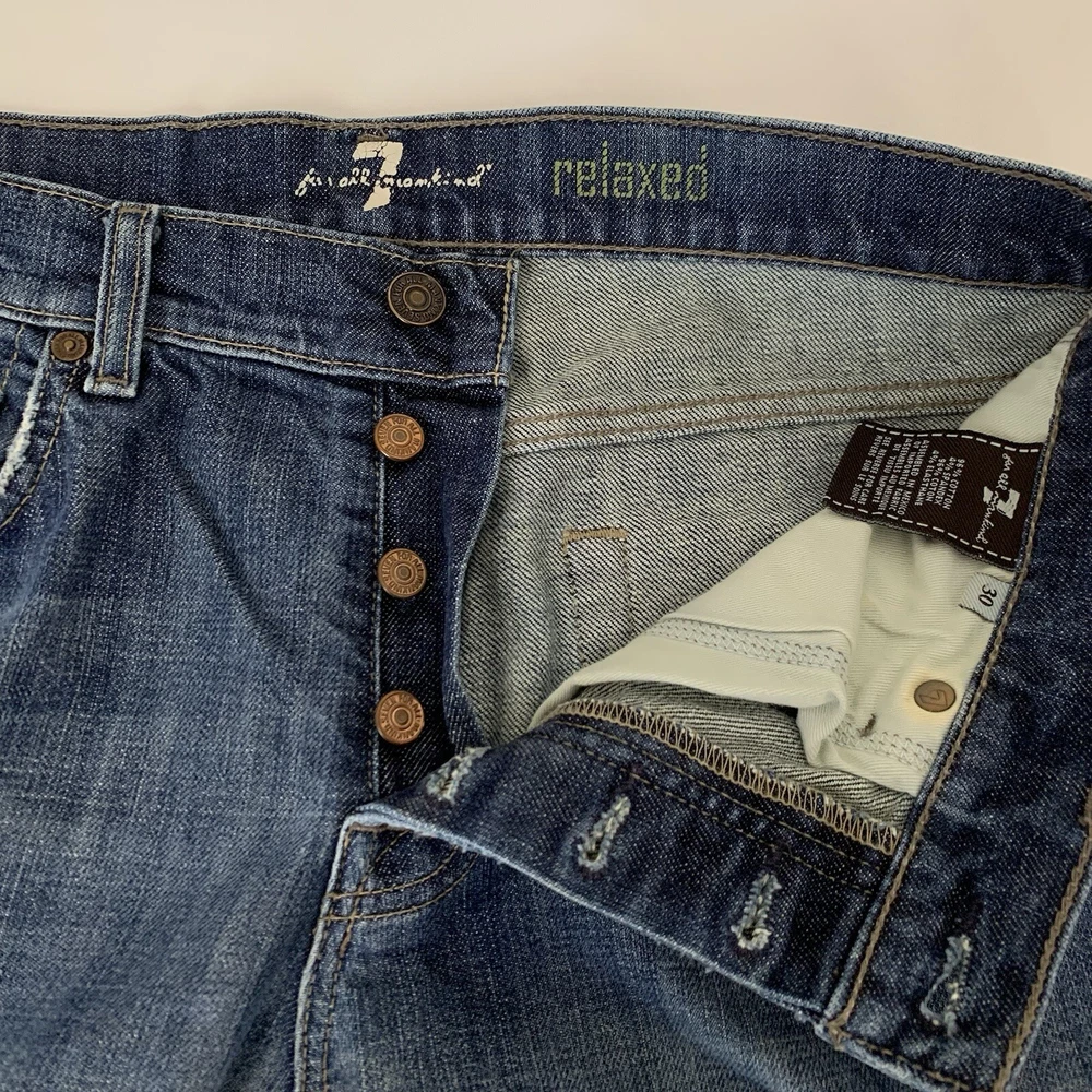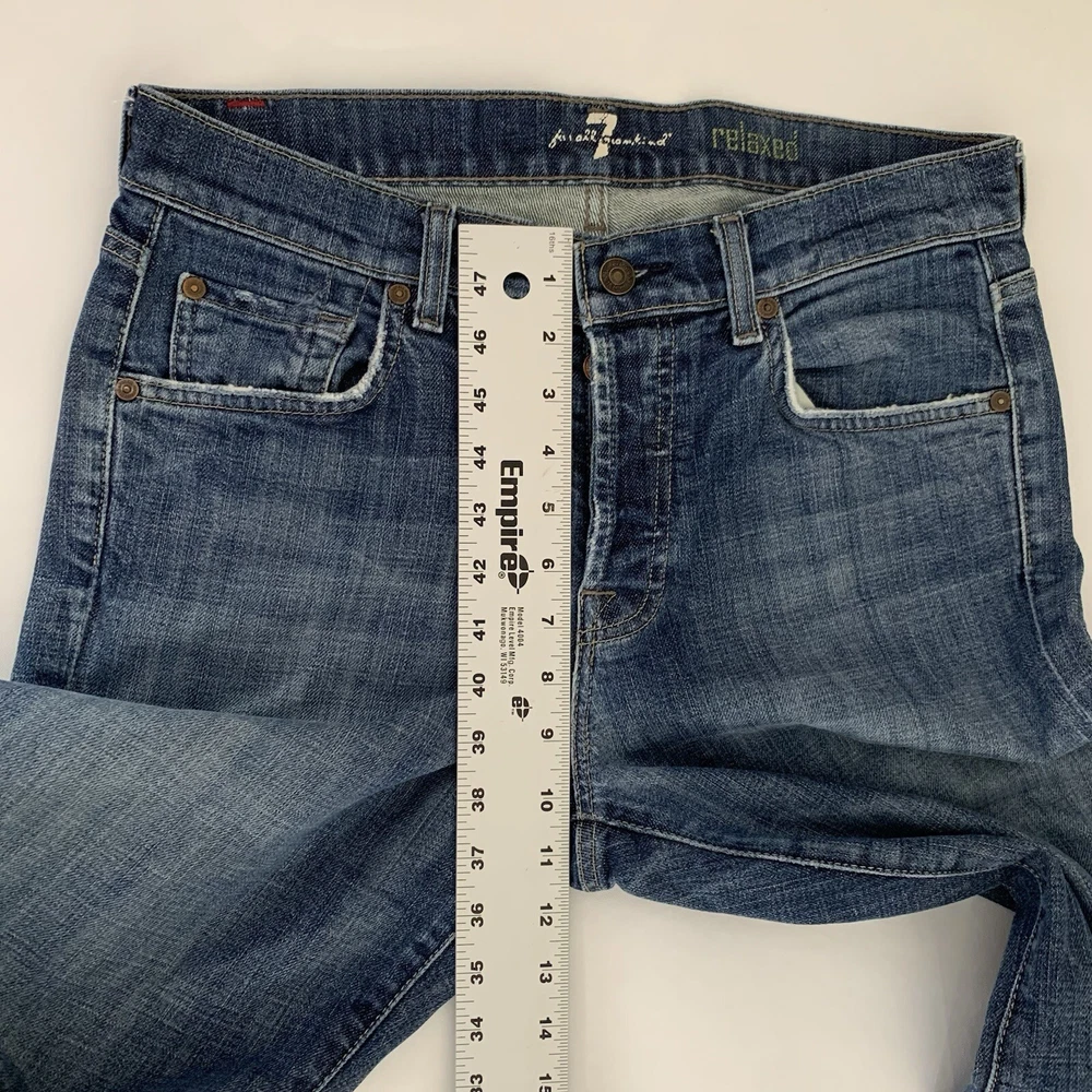 - 7 For All Mankind Relaxed Fit Denim Jeans Size Tag 30 - Measures 32x33 Cotton Stretch Button Fly See photos to c ompare your personal measurements to the garment's measurements to ensure proper fit. Excellent preowned condition. No holes or stains. FAST Shipping! 1-3 business days. Offers welcome! Tags: everyday fashion stylish trendy classic spring summer fall winter seasons apparel comfy comfortable easy to wear classy casual favorite y2k 80s 90s versatile essential 1822 preppy oxford school teacher luxe luxury design popular structured basic classic contemporary college playful flirt aesthetic wardrobe outfit elite fashion designer western rodeo cowboy normcore basic loose comfortable light neutral informal mature self-confident Midwest plain relax simple cabincore dad