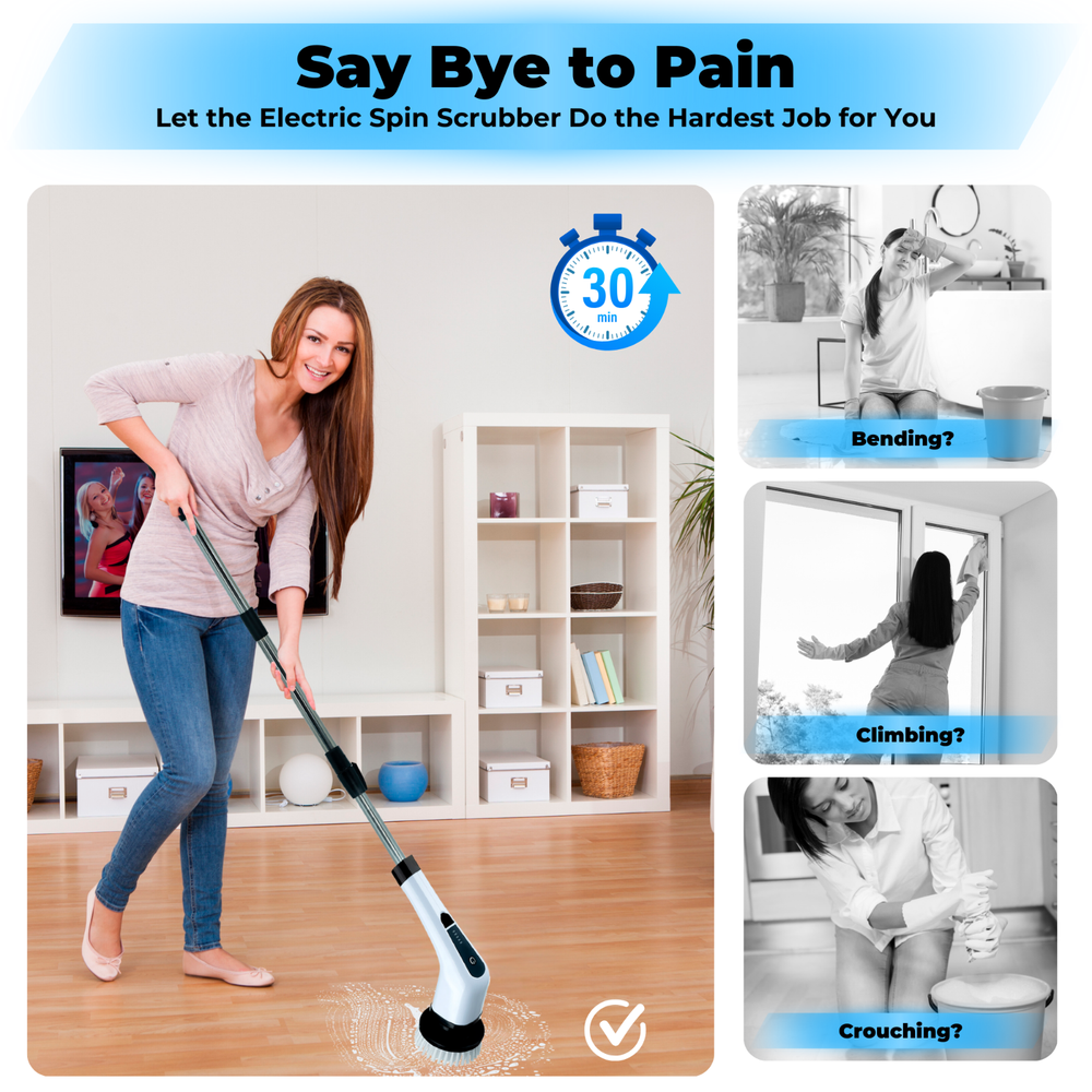 Store Categories Store Categories Other Details Feature: [Home cleaning more easier]– Do you feel tired for home cleaning? This spin scrubber can replace all kinds of cleaning work, It allows you to complete the cleanup work more easily and quickly. [Multifunctional Cleaner] - Includes 7 spin scrubber heads, suitable for cleaning bathroom, bathtub, shower, countertop, stove, sink, glass, cooking bench, tile, tub and so on. [Convenient & Effective Cleaning Tools] - The portable cleaning brush works by power with spin speed 300 RPM. Use the power of motion to get a deep clean with less effort. Compared to the traditional hand cleaning way, this new cleaning way is much faster and more efficient, it helps to save your time and energy and give you totally comfortable housework cleaning experience. [Safety & Waterproof ]– It is designed IPX5 waterproof level. So it is 100% safety when you use it for cleaning or washing. [Long Lasting Battery Life] - Powered by 2500mAh rechargeable premium Li-ion battery, the shower scrubber can realize durable working time. Charging 2 hours and work efficiently for 90 minutes. It is enough for daily cleaning. Say Goodbye to Tradutionnl Cleaning Methods Since you can freely choose the length of the handle, there is no need to bend over, spin scrubber is really convenient for people with back pain and arthritis, especially the elderly. In winter, be patient with cold water in the bathroom, so you don’t have to tremble after the shower! Bathroom scrubber electric let the household cleaning to become so easy, you can take a hygienic bath at any time. Easy Cleaning with Strong Torque Brush head rotating speed :300 rpm in low speed and 400 rpm in fast speed. Strong torque up to 60KGS, It's very easy to clean stubborn stains even for sink cleaning. IPX5 Splash-proof Electric scrubber for bathroom is not totally waterproof, so please do not immerse the whole scrubber into the water to wash. Cleaning Tips If you want to clean the brush head, please detach it from the scrubber first, and then rinse it under the water, wipe the scrubber head with a wet cloth. Cleaning the scrubber in a correct way helps extend the lifespan of the scrubber. Fast Charging Electric cleaning brush scrubber with fast charging port, can be charged quickly in 3-4 hours. and Open&close upgraded electric spin scrubber. Specifications: Weight with packaging: 1200g Packing size: 45.2*16*7.2cm Battery capacity: 2500mah Working time: 90 minutes Charging time: 5 hours Material: environmentally friendly ABS Package : 1* Scrubber 2* Extend Rods 8* Brush Heads 1* Wall Charger 1* USB-C Cable 1* User Manual Shipping Policy Payment Method Returns Policy Shipping Policy Once your shipment has been dispatched you will receive an email with your track and trace number, which you can use to follow your shipment’s progress. Some orders are shipped in multiple packages due to their size or weight, in such cases you will receive an individual tracking number for each package. The order will be prepared for dispatch on the day the order was placed, and shipped within one business day. Payment Method 1. We accept PayPal payment only, if you want to buy more than one item from us, please contact us make a offer. 2. Payment should be completed within 4 (Four) days of auction closing. Or unpaid dispute will be filed for closing auction. 3. We will leave a positive feedback immediately after payment is received. We appreciate a positive feedback as much as you do. If for some reason there is any issue with the purchase, please contact us prior to leaving feedback, and we will be glad to work with you to have it resolved. Returns Policy We are sure you will be pleased with your purchase from our eBay Store. However, unfortunately there may be occasions when you will need to return items to us. 1. Non Receipt Of Items If you have not received your items you must let us know within 7 days from the estimated delivery date. Once we know you have not received your item we will investigate the matter fully both internally and with our carriers. Unfortunately we cannot investigate non receipt deliveries after this time has elapsed. Investigations into lost parcels can take up to 14 days. Refunds or replacements will not be issued until the investigation is complete. Orders sent by Royal Mail: We do advise that the majority of orders are received within 1-3 working days of dispatch. However, for Royal Mail to class the order as lost in the post we have to allow them 15 working days to deliver before we can arrange a replacement or a refund [this is a Royal Mail rule]. Unfortunately, once the order has been dispatched it is then the responsibility of Royal Mail to deliver your item, and as much as we would like to resolve this for you today we do have to allow them this timescale to deliver. If you still haven't received it by the 15th working day, please contact us via eBay & we will investigate the matter for you. 2. Product purchased for USE outside the UK All our products are warrantied and designed for use within the UK. E.g. UK 3 Pin plug and 240v Supplies where applicable. Product warranties are also only valid in the UK and if there a fault with your product this must be sent back to our UK head office for refund or replacement. 3. Returns from outside the UK If you purchase an item from our UK store then the return process is slightly different as we are based in the UK and you are taking the option to purchase from our UK Store. With this in mind any return to would be at the cost of the buyer under all circumstances. 4. Items Damaged in Transit If your item is damaged in transit, we ask that you report it to us within 3 working days (24 hours for our business customers). If the items are visibly damaged on receipt, please take some photos or a video to us show that?(the item damaged, outer packing damaged, outer packing shipping label and S&M bar code). We will try our best to help you solve this problem. have