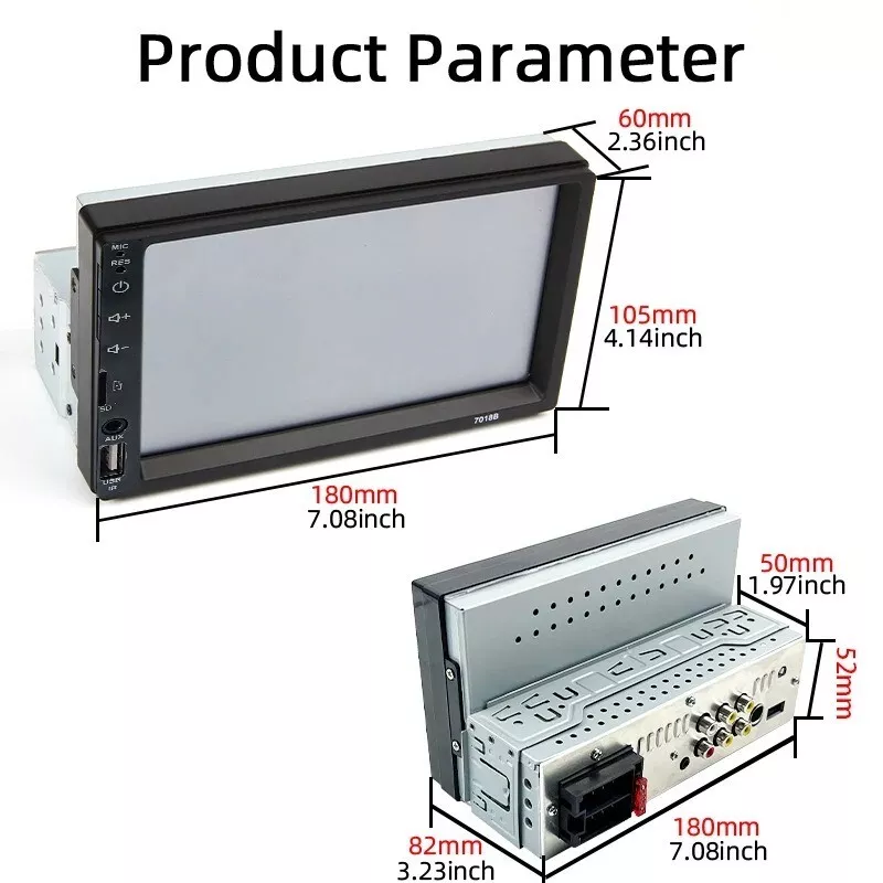 3-7 Days Fast Deliver In USA Specification: Bluetooth 2.0 Supports advanced audio distribution profile Off-time display function High quality digital FM stereo radio Preset 18 stations ( frequency: 87.5-108 MHz ) Supports USB / SD / MMC card reader Supports Audio: MP3 / WMA / APE / FLAC / WAV etc. Supports folder function Supports break points and ID3 Play Supports remote control Rotary volume controlMP3 randomized, 10 track up / down playback Electronic control volume treble, bass, balance and fader Multiple EQ scene selection: Jazz, rock, pop, classical, etc. Mute and loud controlL / R RCA audio output jacks4-channel high power output ( 4 loud speaker ) Supports modes: BT / APE / WAV / WMA / MP3 / FM The remote control battery (not included): CR2025 3V Power Supply: 11 - 16V Transmitter frequency: 2468MHz Power output: 100mW Video in / out: PAL / NTSC composite video signal Working temperature: -20 - 70 degree Receiver sensitivity: -93dbm Input voltage: 12V