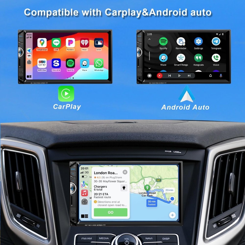 7 Inch Double Din Car Stereo with Apple CarPlay HD Touch Screen Bluetooth USB