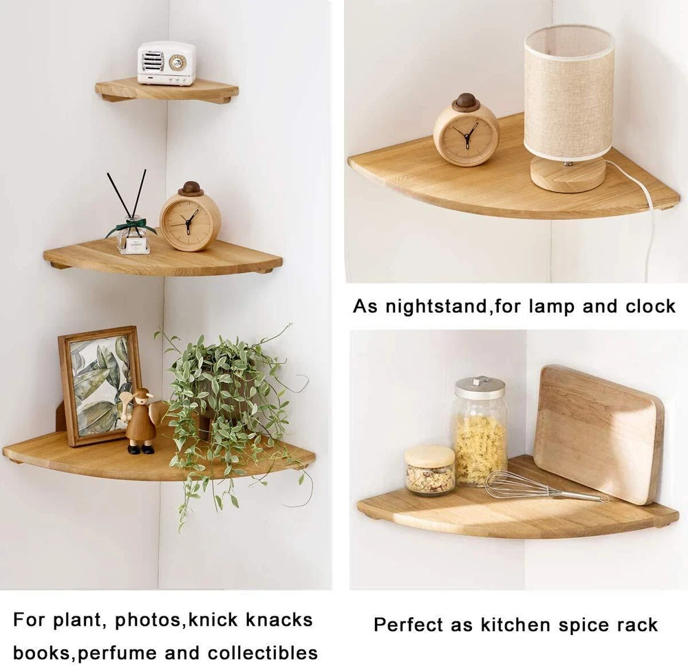 These white oak corner shelves are a game-changer for small spaces! The solid wood feels sturdy and the minimalist design blends seamlessly into any room. I love using them in my bathroom for extra storage—they hold toiletries and decor without cluttering the counter. The eco-friendly finish gives a nice natural look, and the floating design maximizes unused corners. Perfect for plants, books, or displaying trinkets while keeping things organized. Easy to install and surprisingly spacious for their size. Definitely worth it for the quality and versatility!