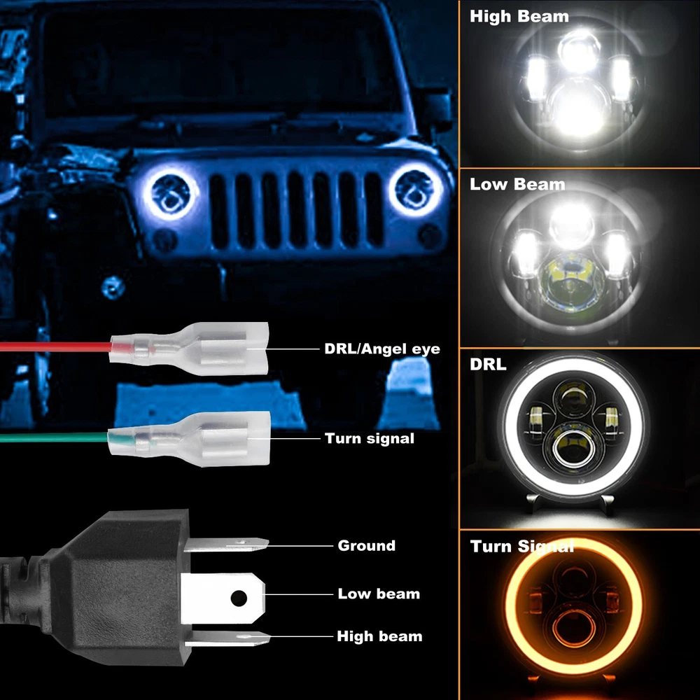 2PC 7" Inch LED Headlights Halo Angel Eyes DRL for Chevy C10 Camaro Pickup Truck # Ship within 24 hours. # 100% New & Excellent Quality # Strictly QC, Each item was fully checked before shipping # FREE & FAST Shipping Delivery with Tracking Number Specification: Material: Durable ABS and LED Color: Black Voltage: DC12V Life Span: 50000 hours Dimension: (7 inches) 7.01" x 7.01" x 3.07"(178mm x 178mm x 78mm) Power: 140W/PCS 280W/PAIR Features: - 7 inches LED Headlights is Multi- function - Halo can be White or Amber. Amber is for turn signal; white is for DRL. - Faster on/off response time, striking warning effect to enhance driving safety. - Weatherproof, low power consumption, long lasting. - Simple installation - Plug & Play. Notice: 1.Please check whether it is fit for your vehicle before purchase. 2.Please allow 1-3mm in size deviation due to manual measurement. 3.Due to the light and shooting angle, pictures may have slightly chromatic aberration. Package included: 2x 7 inch Round LED Headlights 2x H4-H13 wiring harness Note: Without mounting bracket, some models may need mounting bracket! Application: (Including but not limit the following applications) Fit for Jeep Wrangler JK 2 Door (2007-2018) Fit for Jeep Wrangler JK 4 Door Unlimited (2007-2018) Fit for Jeep Wrangler TJ (1997-2006) Fit for Jeep Wrangler TJ Unlimited / LJ (2003-2006) Fit for Jeep Wrangler LJ Unlimited (2004-2006) Fit for Jeep CJ-7(1976-1986) Fit for Jeep CJ-8 Scrambler(1981-1985) Fit for Mazda Miata (1990-1997) Fit for Porsche 944 (1983-1991) Fit for Land Rover Defender 90 & 110 Fit for AM General Hummer (1992-2001) Fit for Freightliner Century Class (1996-2011) Fit for Freightliner Coronado (2001-2016) Fit for Hummer H1&H2 (2003~2009) (H2 needs 9007 male to H4 female adapter,not included in the package) Fit for Chevy Truck (1947-1957 and 1962-1972) Fit for Chevrolet C10 Pickup (1969-1974) Fit for Chevy C10 (1975-1980) Fit for Chevy C10 Suburban (1969-1980) Fit for Chevy C20 Pickup (1969-1974) Fit for Chevy C20 Suburban (1969-1980) Fit for Chevy C20 (1975-1980) Fit for Chevy C30 Pickup (1969-1974) Fit for Chevy C30 (1975-1980) Fit for Chevy Chevelle (1971-1973) Fit for Chevy Chevette (1976-1978) Fit for Chevy El Camino (1971-1975) Fit for Chevy G10 G20 G30 (1975-1987) Fit for Chevy K10 K20 K30 K5 Blazer (1969-1980) Fit for Chevy Lux (1980-1982) Fit for Chevrolet Chevy Nova (1963-1978) Fit for Chevrolet Camaro (1967-1981) Fit for Chevrolet Blazer (1969-1974) Fit for Chevrolet Chevy Monte Carlo (1970-1975) Fit for Chevrolet Chevy Monza (1975-1980) Fit for Chevrolet Chevy Lux (1980-1982) Fit for Chevrolet Chevy Laguna (1973-1975) Fit for Chevrolet Chevy Malibu (1973-1975) Fit for Chevrolet Pickup Truck (1967-1973) Fit for Ford Bronco (1966-1977) Fit for Ford Mustang (1965-1973) Fit for Ford F-100 Pikcup (1969-1974) Fit for Ford F-100 (1975-1979) Fit for Ford F-150 (1975-1979) Fit for Ford F-250 Pickup (1969-1974 Fit for Ford F-250 (1975-1979) Fit for Ford F-350 Pickup (1969-1974) Fit for Ford F-350 (1975-1979) Fit for Ford E-100 Econoline Club Wagon (1975-1978) Fit for Ford E-100 Econoline (1969- 1978) Fit for Ford E-150 Econoline Club Wagon (1975-1978) Fit for Ford E-150 Econoline (1969-1978) Fit for Ford Falcon Sedan Delivery (1961-1965) Fit for Dodge B100 Van (1971-1974) Fit for Dodge B100 (1975-1978) Fit for Dodge B150 (1984-1987) Fit for Dodge B250 (1984-1987) Fit for Dodge B200 Van (1971-1974) Fit for Dodge B200 (1975-1978) Fit for Dodge B300 Van (1971-1974) Fit for Dodge B300 (1975-1978) Fit for Dodge B350 (1984-1987) Fit for Peterbilt 359 (1981-1987) Fit for Peterbilt 379 (1988-2009) Fit for International Harvester 4200 4300 4400 Fit for Kenworth T2000 (1998-2010) Fit for Mack DM RM RW RS RL CF Fit for American Motors Pacer (1975-1980) Fit for American Motors AMX (1968-1978) Fit for American Motors Matador (1974-1978) Fit for American Motors Hornet (1970-1977) Fit for American Motors Javelin (1968-1974) Fit for American Motors Gremlin (1970-1978) Fit for Bertone X 1/9 (1984-1989) Fit for Alfa Romeo Spider (1988-1994) Fit for Datsun 240Z 260Z 280Z 280ZX (1970-1978) Fit for MG Midget (1969-1979) Fit for Plymouth (1949-1955) Fit for Dodge (1949-55) Fit for DeSoto (1949-55) Fit for Chrysler (1949-55) Detail Image: Payment: 1.We accept ebay payment only. 2.All major credit cards are accepted through secure payment processor ebay payment. Shipping: 1.We ship to your eBay or ebaypayment address. Please make sure your eBay and ebaypayment address is correct before you pay. 2.Items will be shipped within 1-3 business day when we received payment. 3.Delivery time depends on destination and other factors; 4.International buyers please note: a.Import duties, taxes and charges are not included in the item price or shipping charges. These charges are buyer’s responsibility. We will try our best to reduce the risk of the custom duties. b.Please check with your country's customs office to determine what these additional costs will be prior to buying. Returns: Please contact me before opening any return,don't worry, I will definitely solve your problem.thank you!!! 1) If you received an incorrect, damaged, defective, or item not as described, contact us for a partial/full refund or replacement on our cost. 2) If you want to return the item, please contact us within 30 days after package received. Return products must also be in its original condition: including box, packaging and all other accessories. Payment 1.We accept PayPal only! 2.Please keep the consistency of the address from Paypal and eBay. 3.Payment must be received within 3 days since you won the item, or eBay will launch Unpaid Reminder Against you. Delivery Details 1. All items will be shipped to buyer's ebay address,we don't take charge for wrong address left. 2. All items will be shipped within 24 working hours upon receipt of payment, and multiple items will be combined shipping. 3. In most cases, delivery takes around 1-7 business days from US Warehouse b