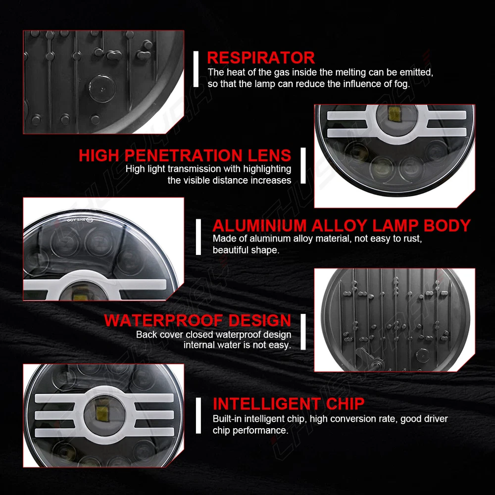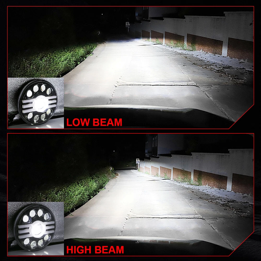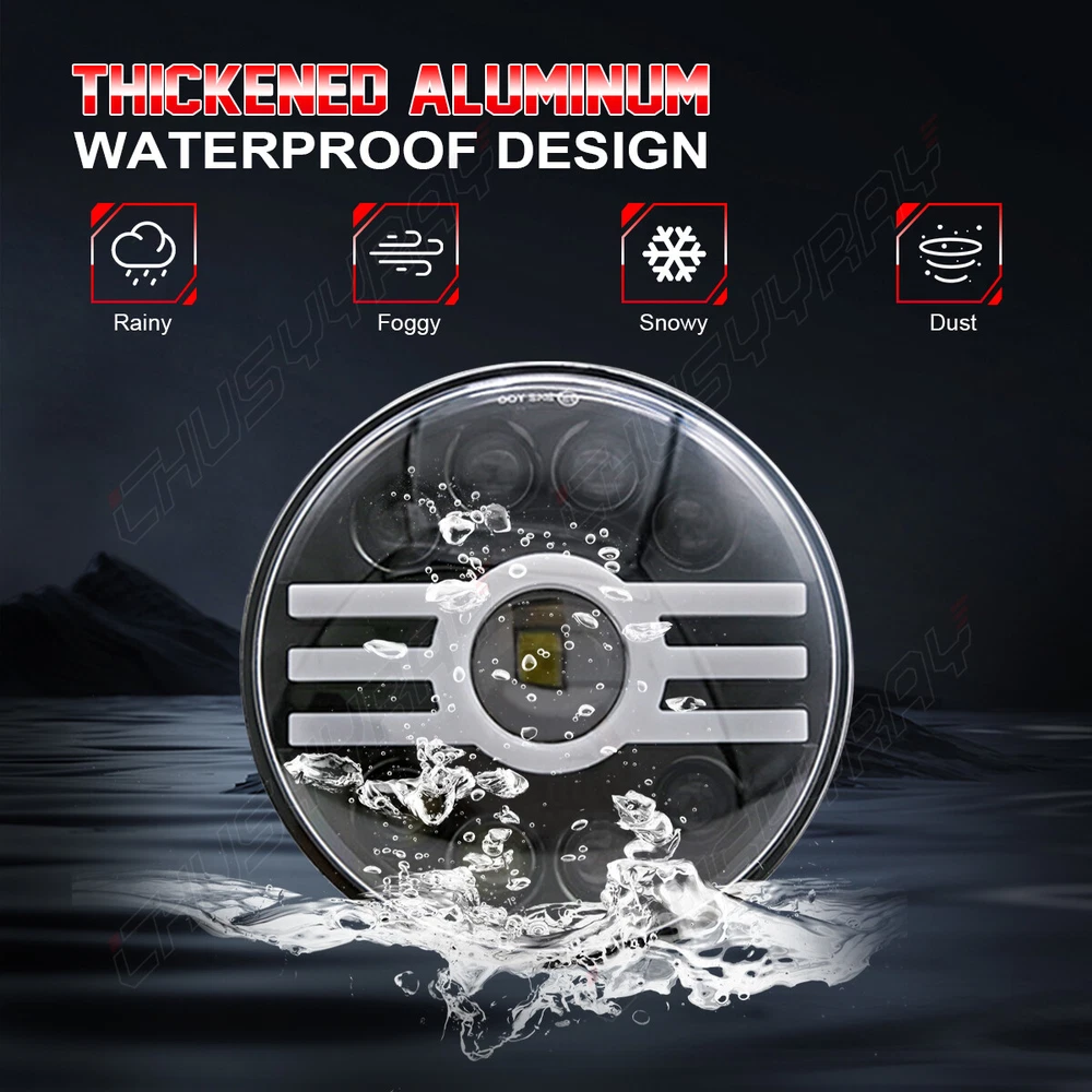 Features: 7 inch led headlight: 6000K high and low beam. Great replacement of original halogen and HID headlight. You can stay safe at night, foggy and rainy day. Package including: 2 pcs 7'' led headlights Better Heat Dissipation: 7" round headlights made from quick cooling aluminum alloy heat sinks and high-quality heat conduction silicone gel can effectively extend the lifespan of the light bar to over 50,000 hours Easy install: This 7” headlight is compatible with most vehicles and is plug-and-play. However, a very small number of vehicles may have slight differences in the label slots position. You may need to grind off 1-2 tab slots to fit the housing. This may take you some time, but the modifications help your driving and it is well worth it. The H4-H13 adapter fit for most vehicle, a small part may require other adapter cables Wide Application :7'' led headlight compatible with jeep Wrangler JK 2 Door 2007-2015; Compatible with jeep Wrangler TJ 1997-2006; Compatible with jeep Wrangler CJ-7 1976-1986; Compatible with jeep Wrangler TJ Unlimited/LJ 2003-2006; Compatible with jeep Wrangler JK 4 Door Unlimited 2007-2015; Compatible with CJ-8 Scrambler 1981-1985; Compatible with Mazda Miata; Compatible with Chevy. Fit which original bulb is a standard 7" light bulb. Pls check the size of your vehicle bucket Best Replacement promise: Get foggy or light beam go out= Get new; Do not fit for your vehicle=Return headlight; Defective lights=get new; Missing some accessories=Re-send them; Causes fault code, trouble code, flicker or hyper flash=Get the anti-flicker ; Any problem with our lights, Just find orders details and reach out to seller,we can fix that! Specification: - Voltage: DC 10V~30V - Wattage: 105W - Lifetime: More than 50000 hours - Color Temperature: 5600-6800K White - Luminous Flux: 6500LM@high beam,4800LM@low beam - Waterproof Rating: IP 67 - Dimensions: 7 Inch - Surface Finish: Black Housing - Connection: H4/9003 Plug - Material: high quality black aluminum housing Package include: 2pc 7" round led headlight 2pc H4-H13 adapter On May 29, 2025 at 04:05:02 PDT, seller added the following information: