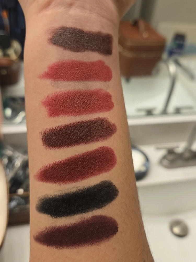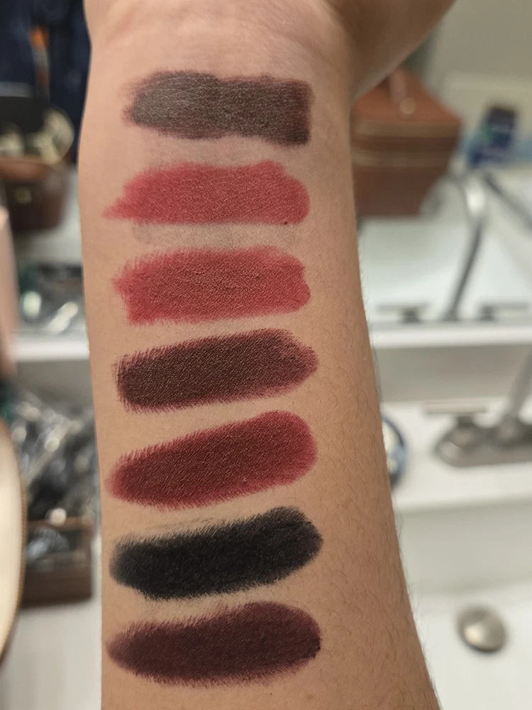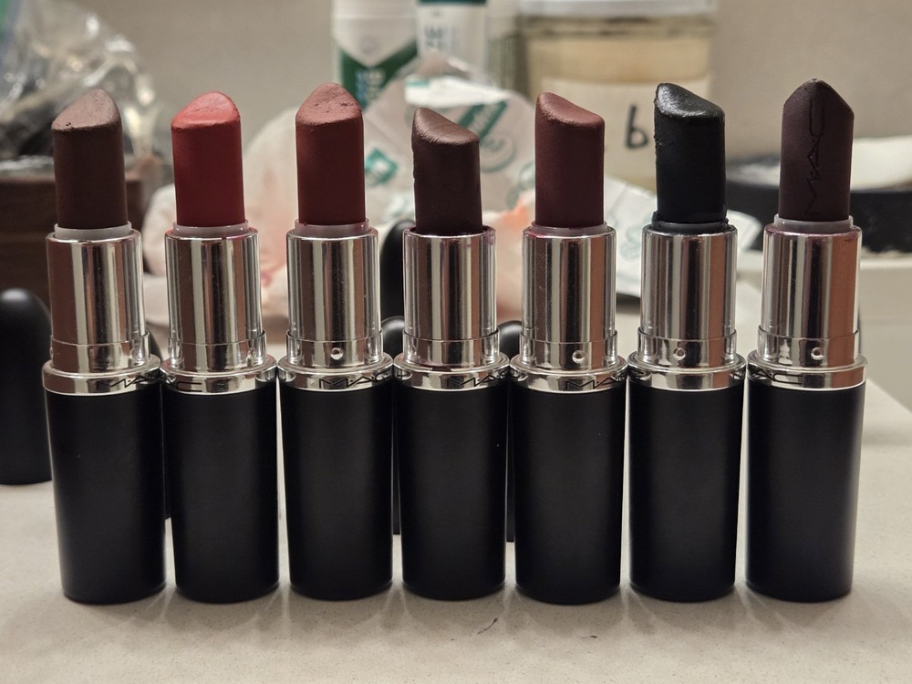 7 Mac Matte Lipstick Bundle plus 2 Mac Liquid Lipstick - See photos for amount of usage - From left to right Mac Matte Lipstick - Antique Velvet Mac Matte Lipstick - Russian Red Mac Matte Lipstick - Avant Garnet Mac Matte Lipstick - Sin (No Label) Mac Matte Lipstick - Diva Mac Matte Lipstick - Caviar Mac Matte Lipstick - Smoked Purple Mac Liquid Lipstick - High Drama Mac Liquid Lipstick - Caviar See photos for swatches of each color, happy to provide more photos if needed.