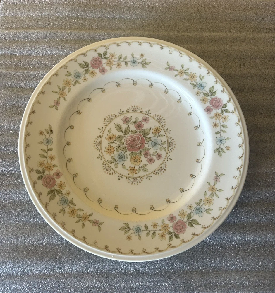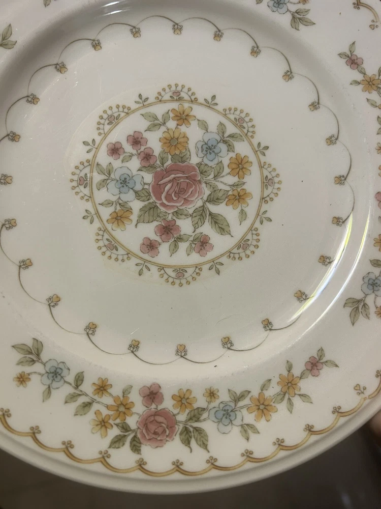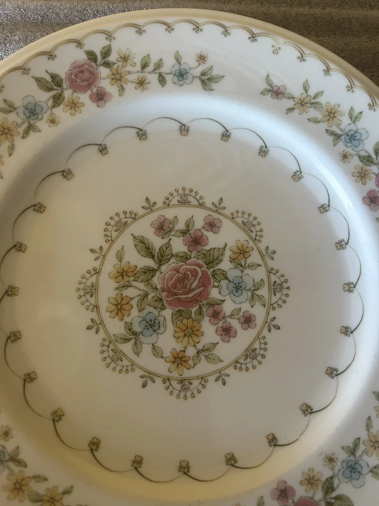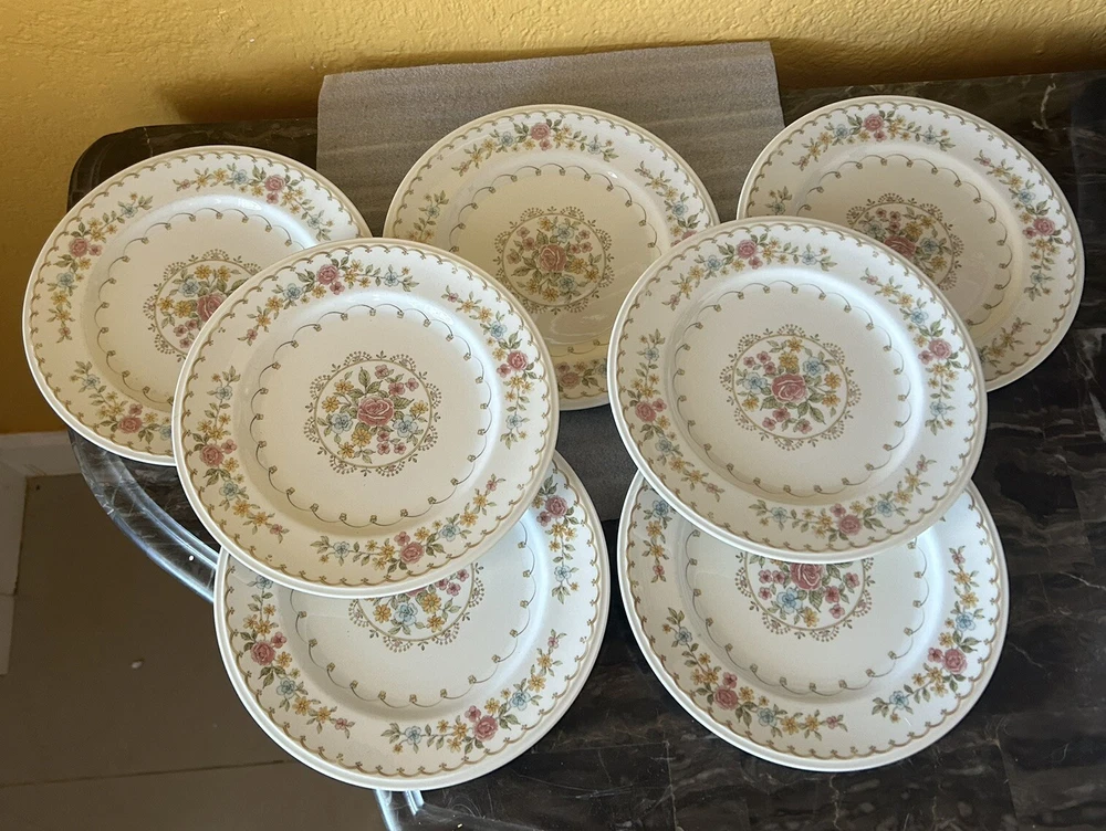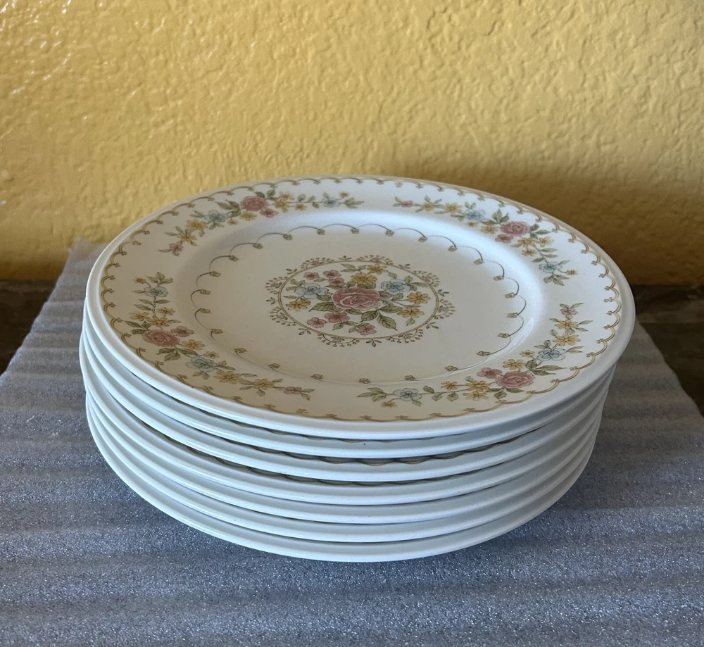 7 Noritake Verse Salad Plates Set Vintage Floral Pink Yellow Versatone Japan .8” Pre owned but in good condition