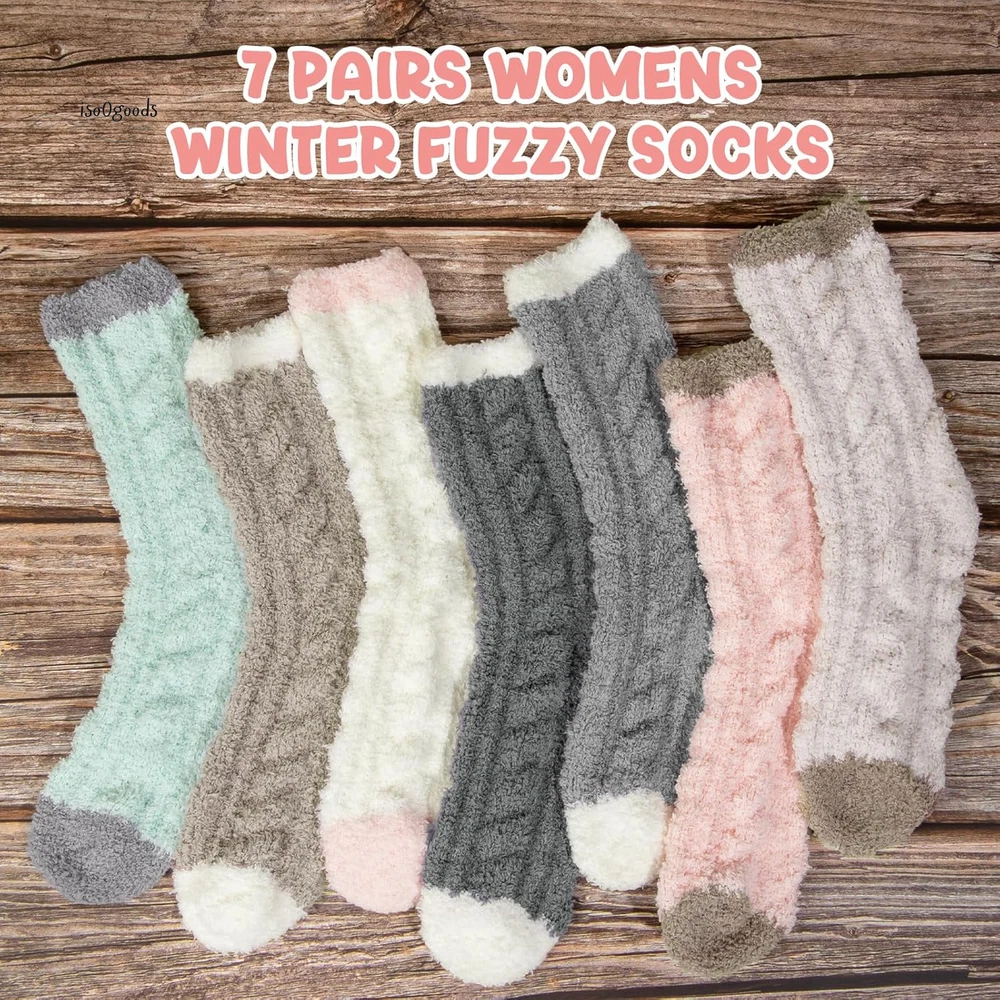 Product Description: Women's Fuzzy Socks – The Perfect Christmas Gift Stay Cozy and Warm: These CHALIER Women's Fuzzy Socks are designed to keep your feet warm and comfortable during cold weather. Whether you're relaxing at home, lounging by the fire, or enjoying a cozy winter day, these socks provide the ultimate softness and warmth. Key Features: Fluffy and Soft : Made from premium materials, these socks are extra soft and fluffy, providing a cozy, cloud-like feel that will keep your feet toasty throughout the day. Perfect for Cold Weather : Ideal for winter, these socks are designed to provide warmth and comfort, making them perfect for chilly evenings or lounging around the house. Variety of Colors and Styles : Choose from a range of different colors and styles, allowing you to match your personal preference or outfit. Whether you prefer classic neutrals or vibrant hues, there’s a pair for every taste. 7-Pair Set : This set includes 7 pairs of fuzzy socks, offering enough options to keep your feet warm all week long. Each pair is perfect for daily use, providing variety and comfort. Versatile and Practical : These socks are suitable for many occasions, whether you're at home, enjoying a cozy night in, or even as a thoughtful gift. They are perfect for lounging, wearing with slippers, or giving as a Christmas present . Ideal Gift Choice : These fuzzy socks make an excellent gift for family and friends, especially during the holiday season. A practical and thoughtful present that adds warmth and comfort to anyone’s wardrobe. Perfect for Winter: The Women's Fuzzy Socks are the ideal solution to keep your feet cozy during the colder months. With a variety of colors and styles to choose from, you can enjoy both comfort and style all season long. Available in a Set of 7 Pairs , these socks are a great addition to any winter wardrobe or a perfect gift to keep loved ones warm. Whether for Christmas or just because, they are sure to be a hit!