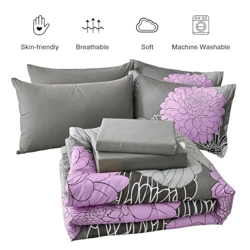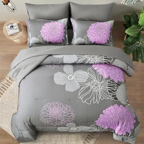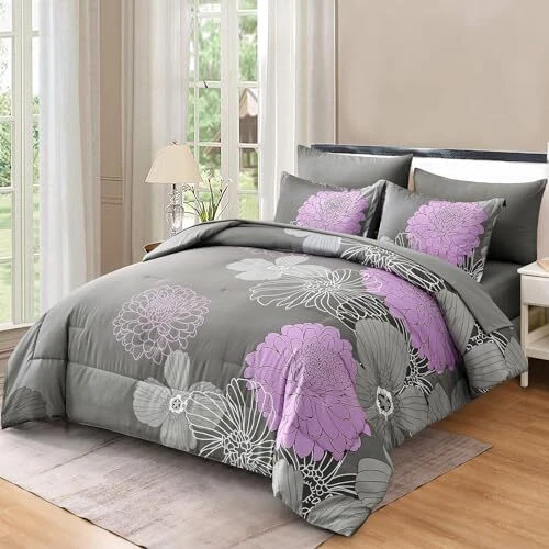 Return Policy Fast Delivery Trusted seller 7 Pieces Bed in a Bag Comforter Set Queen Size Grey Purple Bedding Sets Floral Soft Microfiber Comforter for All Seasons 90"×90" Product Description Floral pattern: This 7 pieces comforter set has flowers of different sizes and colors printed on it.Many flowers bring vitality and vigour to people. It also has a mysterious feeling.Looks elegant and bold. Decorate your bedroom. Can be given as a gift to your friends, family, or yourself. 7 Pieces comforter set: This queen comforter set has 7 pieces.The quantities are as follows: 1 comforter (90” x 90”), 2 pillowcase (20” x 26”), 2 pillow shams (20"x30"), 1 fitted sheet (60 "x80"+12"), 1 flat sheet (90"x102"). The patterns are in the same style and are uniform. You don't have to bother to buy various products of the same style.Save time. Microfiber Material: This 7 pieces comforter set is made of super soft microfiber material. Soft, lightweight, compact and durable,warm. Available in all seasons. Easy to care: Our 7 pieces comforter set are machine washable! Wash in warm or cold water, roll on low and dry, iron if necessary. Very convenient and save time. Satisfactory service: Customer satisfaction is our greatest pursuit,aslo is standard of good products. We hope that the products can meet the various needs of customers. If you have any questions or suggestions about the product, please contact customer service by email in time, and we will give you a satisfactory answer. Shipping Returns Payment Shipping Shipping is FREE to all addresses other than APO/PO boxes in the lower 48 states. All our stock ships from US-based warehouses. Shipped via USPS or UPS (depending on location and package weight) Unless stated otherwise, all orders will ship within 24-72 hours of your payment being processed. Check our feedback to see the great reviews of FAST shipping we offer. Returns Seller does not accept returns Payment We currently accept payment via eBay managed payments only. Once payment is cleared, we will dispatch your shipment within 1-3 business days. Please refer to the "Shipping" tab for more information regarding shipping speed to your destination.