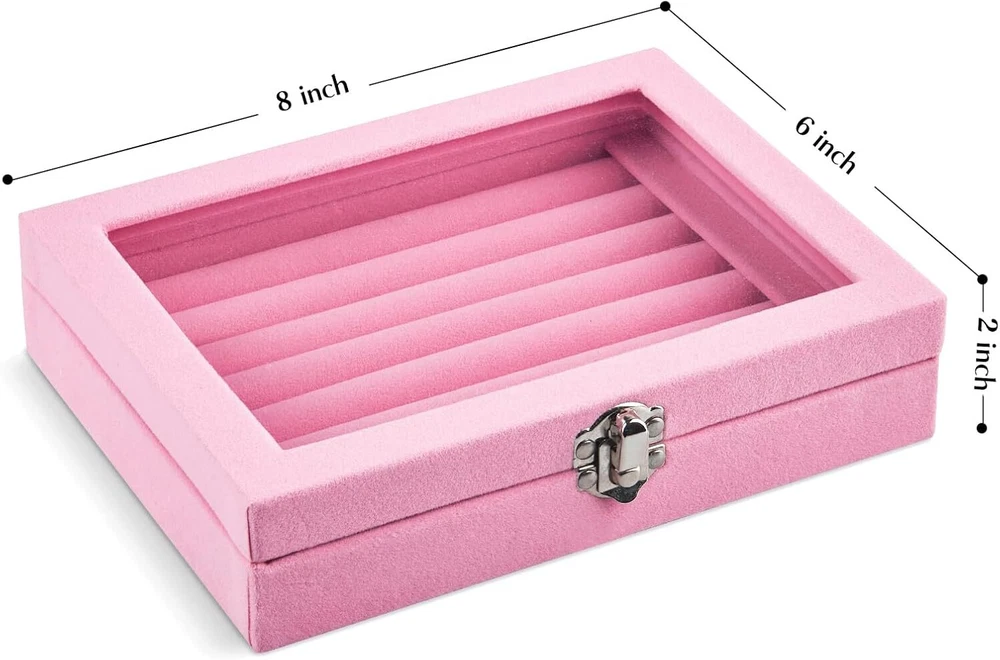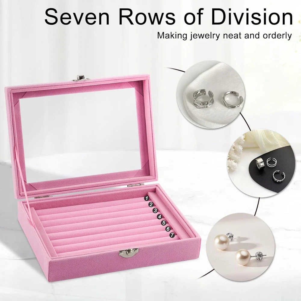 7 Slots Ring Holder Storage Box Velvet Ring Display Case Jewelry Earrings Neckla Premium Quality: Ring holder box is constructed with reliable composite board wrapped in premium pink velvet fabric, which is soft to the touch and suitable for long-term use 7 Slot Storage: Our jewelry display case is designed with 7 slots, sufficient storage space can be used for rings, earrings, brooches, buttons, and other valuables Clear Large Window: Jewelry organizer with clear glass lid not only prevents dust, scratches and oxidation, but also allows you to quickly find the jewelry you want and save your time Easy to Carry: The jewelry storage box measures 8 x 6 x 2 inch and is lightweight, easy to carry and store, making it ideal for collecting jewelry at home, carrying jewelry on a trip or displaying merchandise in stores Perfect Gift: Your mother, wife, daughter, friend will be very happy to receive a jewelry box as a gift on an anniversary, Christmas, birthday or wedding Shipping We offer FREE shipping on all orders! We ship within Three business days of payment, usually sooner. We use a selection of shipping services such as UPS, FedEx, USPS etc. We only ship to the lower 48 states, no APO/FPO addresses or PO Boxes allowed. Local pickups and combined shipping options are not provided at this time. Return You can return a product for up to 30 days from the date you purchased it. Any product you return must be in the same condition you received it and in the original packaging. Please keep the receipt. Payment We accept payment by any of the following methods: PayPal Please pay as soon as possible after winning an auction, as that will allow us to post your item to you sooner! Feedback Customer satisfaction is very important to us. If you have any problem with your order, please contact us and we will do our best to make you satisfied. Contact Us If you have any queries, please contact us via ebay. We usually respond within 24 hours on weekdays. Please visit our eBay store to check out other items for sale! Thank you for shopping at our store.