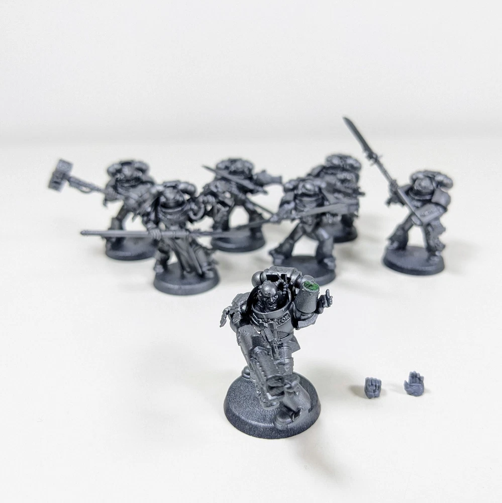 7 Space Marine Plastic Miniatures Warhammer 40K, 40000 These figures are metalic/grey in colour Please see pictures for actual condition