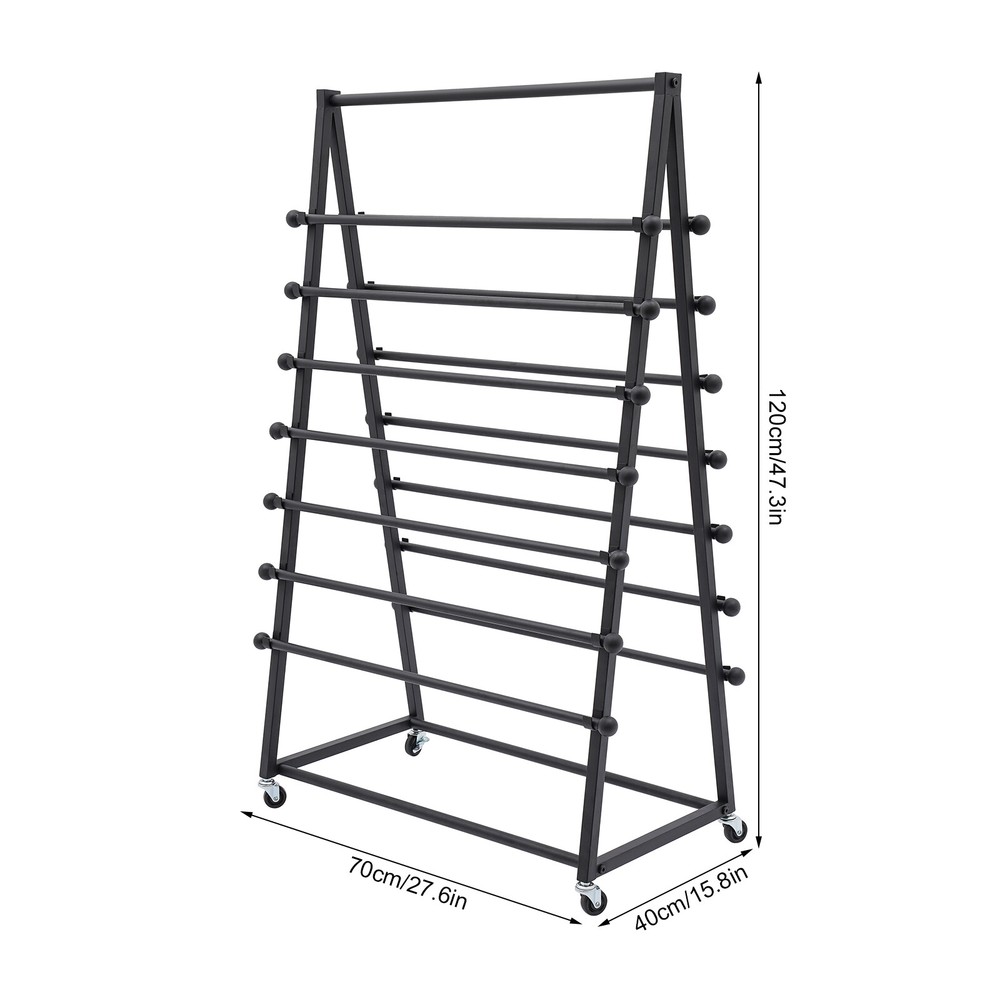 Specification Material: Carbon Steel Color: Black Style: Modern Shape: Triangular Process: High-temperature Baking Paint Mounting Type: Freestanding Assembly Required: Yes Number of Tiers: 7 Number of Crossbars: 14 Each Tier Load Capacity: 4.5kg/10lbs Gross Weight: 7.5kg/16.53lbs Net Weight: 7kg/15.43lbs Each Rod Diameter: 1.6cm/0.63in Package Included 1* Ribbon Organizer 1* English Installation Instruction All Accessories for Assembly 7 Tier Ribbons Roll Storage Rack Metal 2-Sided Ribbon Organizer Wire Spool Stand Key Features Build to Last: It is made of high-quality carbon steel with a high-temperature baking paint treatment , which will not rust or corrode, and is durable and waterproof to meet your long-term storage needs. Ample Space: The overall height of the 7-tier design is 47.24 inches, the spacious spacing and double-sided use make it good for placing items and keeping them fresh, giving you a clean and tidy visual experience. Thoughtful Design: With 14 removable bars, you can neatly store and display a variety of ribbons. Plus, it allows you to quickly restock or change ribbons as you need them. Excellent Load Capacity: The thicker tubes and sturdy triangular construction allow each tier to hold approximately 10 lbs. for your silk scarf and scarf display needs. Move and Fix at Will: Four universal wheels on the bottom (all with brakes) help you move and secure the product. Versatile Decoration: The elegant black color and simple lines make it a work of art and can be adapted to most home or store décor styles. In addition, colorful ribbons placed on the aspect will also make it look more vibrant and beautiful. Effortless Clean: Thanks to its smooth surface, removable crossbars and simple structure, you can wipe away stains with a soft rag. Easy to Assemble : With complete accessories and an English installation diagram, you can assemble it quickly and easily and enjoy the fun of the assembly process. Ideal Gift: Thanks to its practicality and beauty, you can give it as a Christmas, Thanksgiving, or housewarming gift to craft enthusiasts. Protective Package: We have used air bubble bags to wrap this product, designed to minimize damage to the product during shipping. Details Round Edges: The smooth, and burr-free edges make it not only more comfortable to use but also enhance the safety of use. Spherical Blocks: The spherical blocks on the crossbar prevent the ribbon from falling off and make the product look better. Application It can be used for both DIY, craft store, business, home, craft room, florist, gift store, studio. It can store towels, ribbons, scarves, shawls, ties, scarves, ribbon rolls, Vinyl rolls, clothes, bags and more! Specification Material: Carbon Steel Color: Black Style: Modern Shape: Triangular Process: High-temperature Baking Paint Mounting Type: Freestanding Assembly Required: Yes Number of Tiers: 7 Number of Crossbars: 14 Each Tier Load Capacity: 4.5kg/10lbs Gross Weight: 7.5kg/16.53lbs Net Weight: 7kg/15.43lbs Each Rod Diameter: 1.6cm/0.63in Product Size: 70*40*120cm/ 27.56*15.75*47.24in Package Size: 120*43*6cm/47.24*16.93*2.36in Package Included 1* Ribbon Organizer 1* English Installation Instruction All Accessories for Assembly Notes Please note that this product does not include ribbons and other display items. Please measure the size before use to see if it fits your needs. Please allow the slight color difference caused by the shooting light and 1-3cm error due to manual measurement, and make sure you do not mind before ordering. Payment Delivery details Terms of sales About us Contact us Payment We accept ebay payment 。 Fees such as import duties, taxes are not included in the item price or shipping costs. These charges are the buyer's responsibility. Delivery details Shipping: 2-9 working days to: USA Terms of sales We maintain high standards of excellence and strive for hundred percent customer satisfaction. Feedback is very important to us. We hope that you contact us immediately before you give neutral or negative feedback, so that we can address your concerns. It is impossible to address issues if we do not know about them! About us Your satis faction is our ultimate goal. We work hard to earn your trust and future business. Our certified technicians have tested each item before shipping. The unit comes with 1 year limited warranty on all manufacturing defects. a) If you receive a defective item, you may return it or ask for a discount. Please contact us within 14 days after you receive the package. b) What you returned must be intact and in its original packaging as re? u. Customer is responsible for shipping costs of the returned item. c) We will cover the cost of shipping back t with the shipping rate indicated in the registration page. We will send you a new unit or refund the full payment you paid. Thank you. Contact us Business Hour Business Hour: Monday To Friday: 8:30 AM to 5:00 PM (Beijing China time) Due to time zones, our reply to your questions may not be immediately. But within above working time, we will reply your email within 24 hours. If it's non-workdays, please kindly be patient and wait till Monday. Please contact us with ebay message. Please feel free to contact us if you have any questions. Monday To Friday: 8:30 AM to 5:00 PM (Beijing China time) Due to time zones, our reply to your questions may not be immediately. But within above working time, we will reply your email within 24 hours. If it's non-workdays, please kindly be patient and wait till Monday. Please contact us with ebay message. Please feel free to contact us if you have any questions. On Apr 15, 2026 at 19:08:15 PDT, seller added the following information: