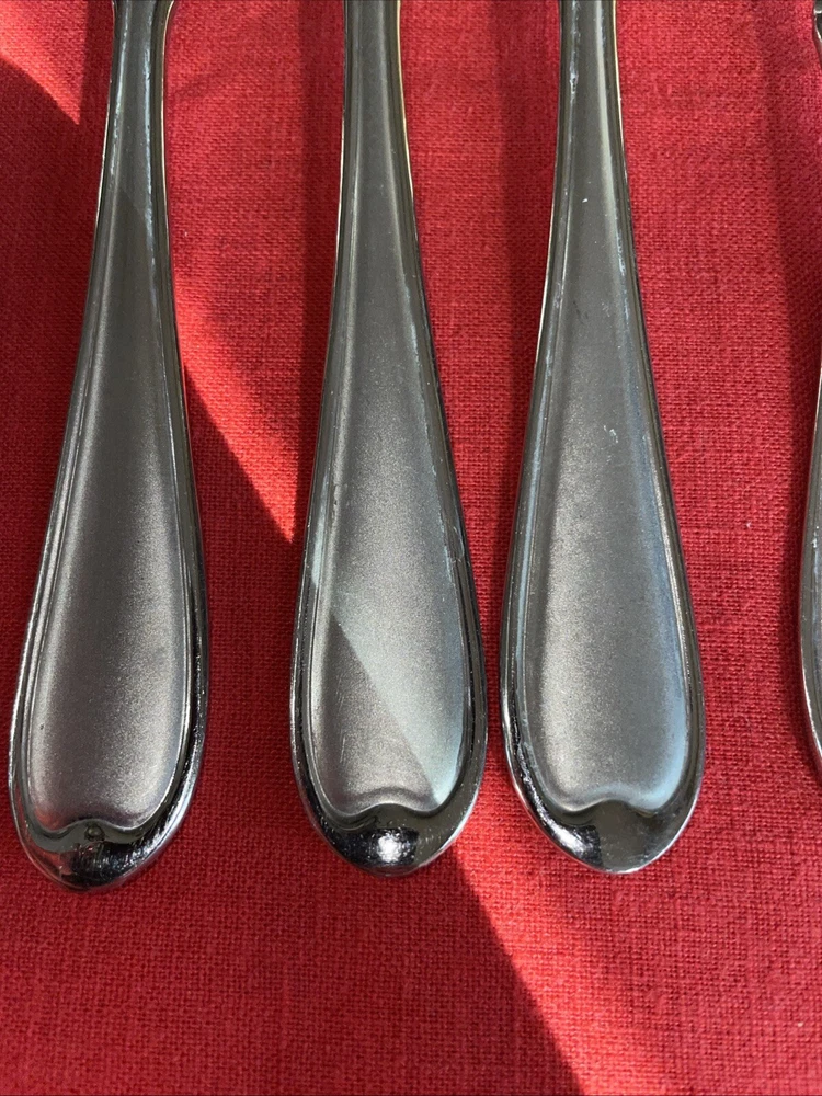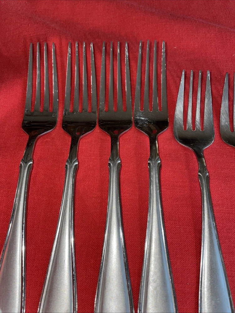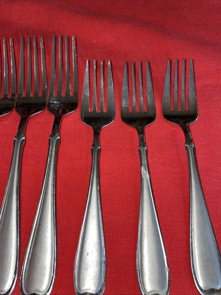 Add a touch of elegance to your dining experience with this Wallace Summerston Frost 7-piece stainless steel flatware set. The set includes four dinner forks and three salad forks, all with a plain back design.
